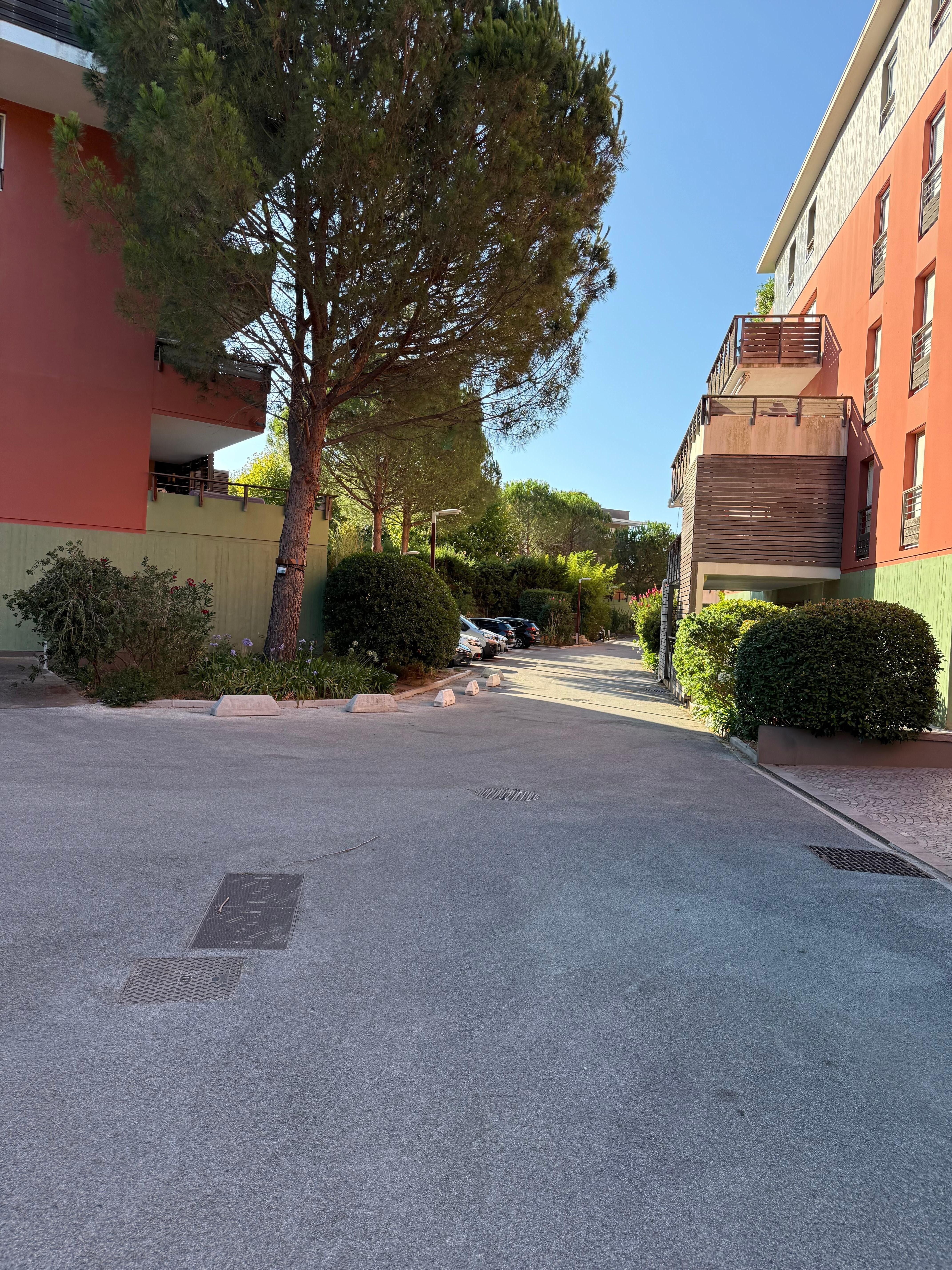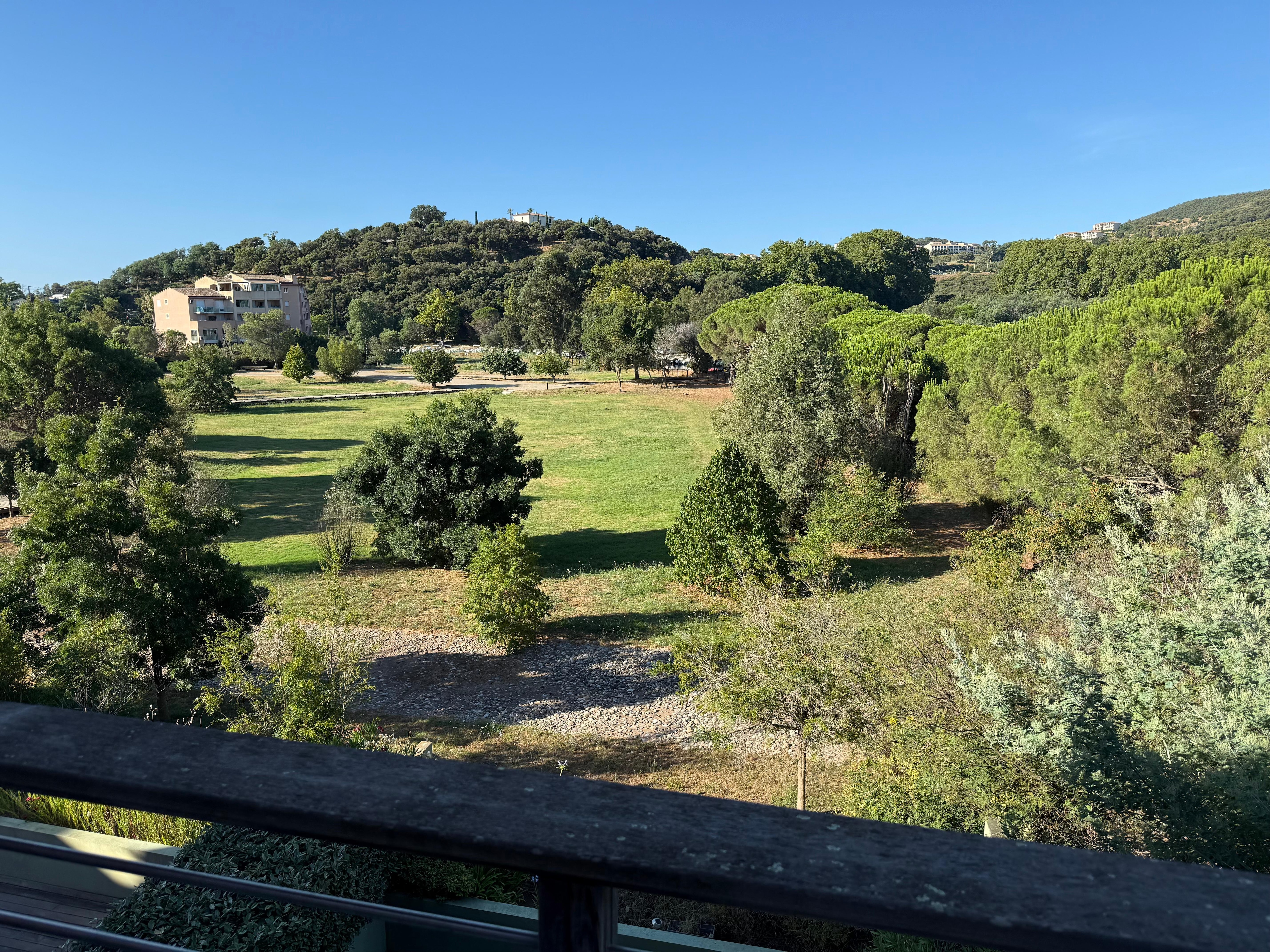 The living room and the kitchen open onto a beautiful terrace facing the large park of the residence, facing due west, with a view of the hills of Agay. The sun will be there in the afternoon and until sunset.