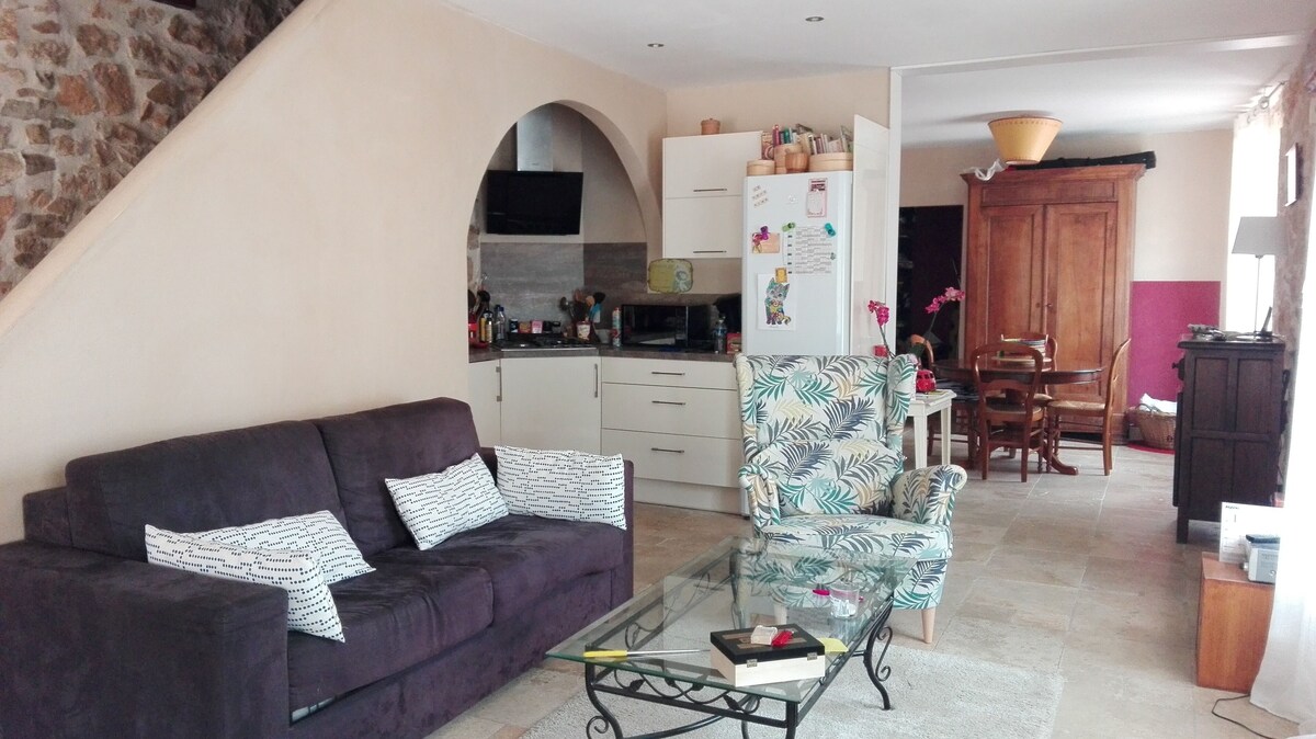 110m2 house, village center, quiet. Comfortable, kitchen with 4-burner gas hob inside and electric stove with oven on the terrace.