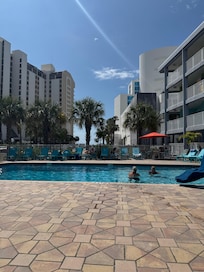 We normally stay on the north end of the beach but booked this room last minute and it was great! Short walk to mini golf, stores and the beach. There’s lots of restaurants close by to choose from. Our room was right at the pool so that was perfect for our 6 year old that wanted to swim the whole time.