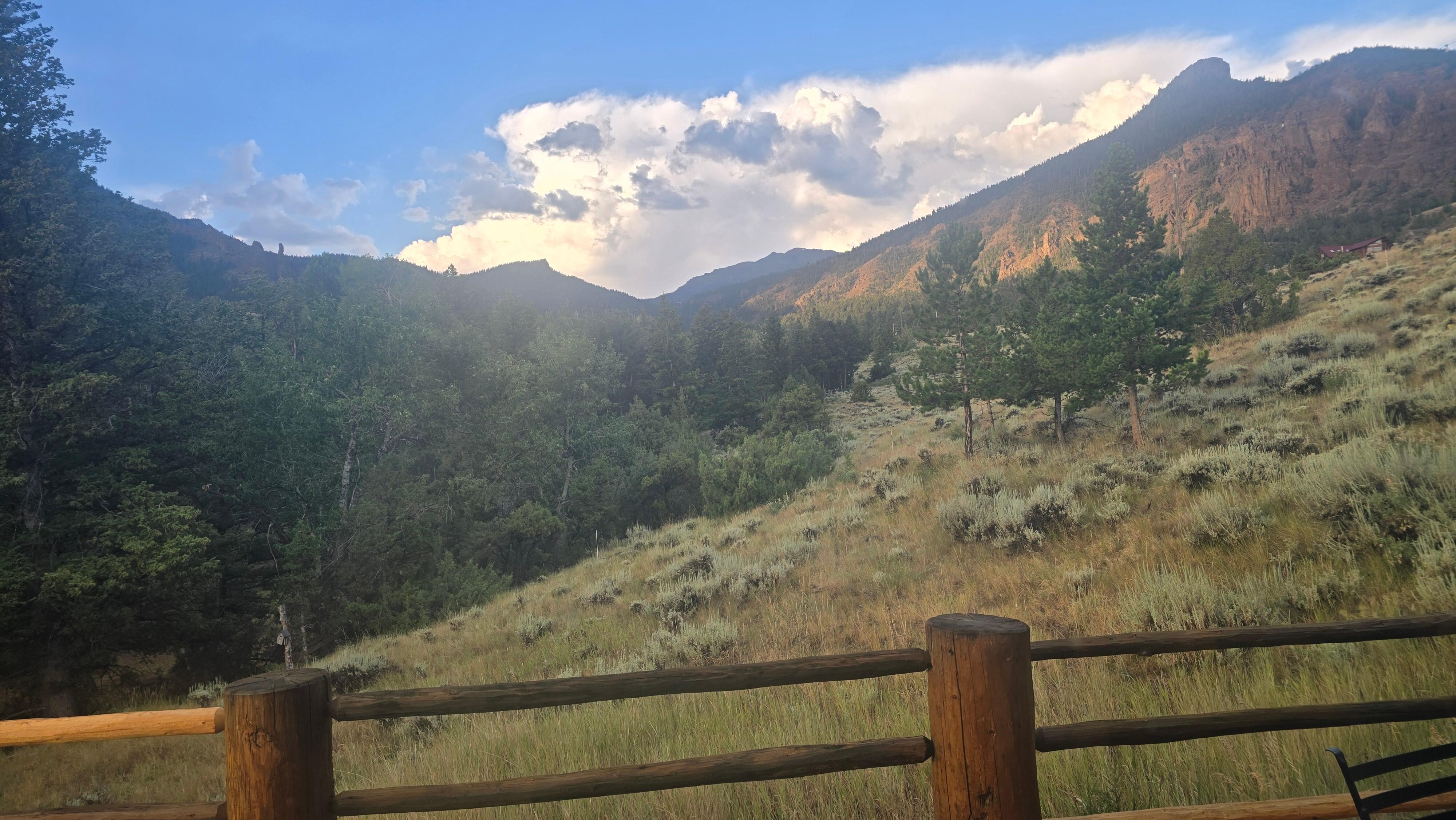 Outside Wapiti Peek you will find a wraparound porch with panoramic mountain and forest views. With frequent sightings of Wyoming wildlife such as deer, elk, moose, numerous bird species, and even the occasional sighting of Wyoming's apex predators. In the evenings, you may be serenaded with the sound of elk bugling, owls hooting and maybe even a wolf howling in the peaks or valleys surrounding this wild Wyoming mountain cabin. This cabin is in the heart of Wapiti Valley. Historic downtown Cody, Wyoming is a 30-minute drive to the east. It is also a 30-minute drive to the west to Yellowstone National Park's east gate! Make Wapiti Peek your base point destination while exploring all of Cody, Wyoming has to offer.