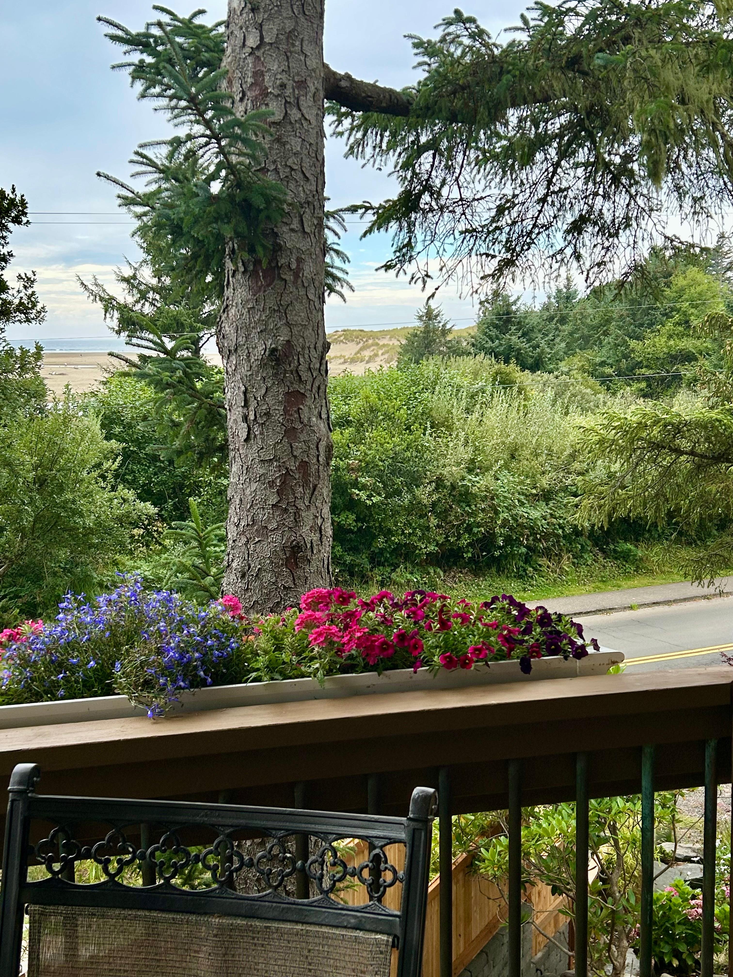 This recently remodeled 3 bedroom, 3 bath vacation refuge is the private main level of a home with spectacular views of Ecola Creek and the ocean! Two beautifully furnished king suites, one with Jacuzzi tub, the other with direct ocean view. Additional room with queen sleeping. Complete kitchen with bar and table seating, open to living area with fireplace. Enjoy nature from the large private deck with comfy seating and additional outdoor dining, and again, that stunning ocean view! Private entrance, and parking for 2 cars on site. Additional niceties include beach wagon, chairs and umbrella. Free cruiser bikes available by arrangement. Contact the owner for any special requests.