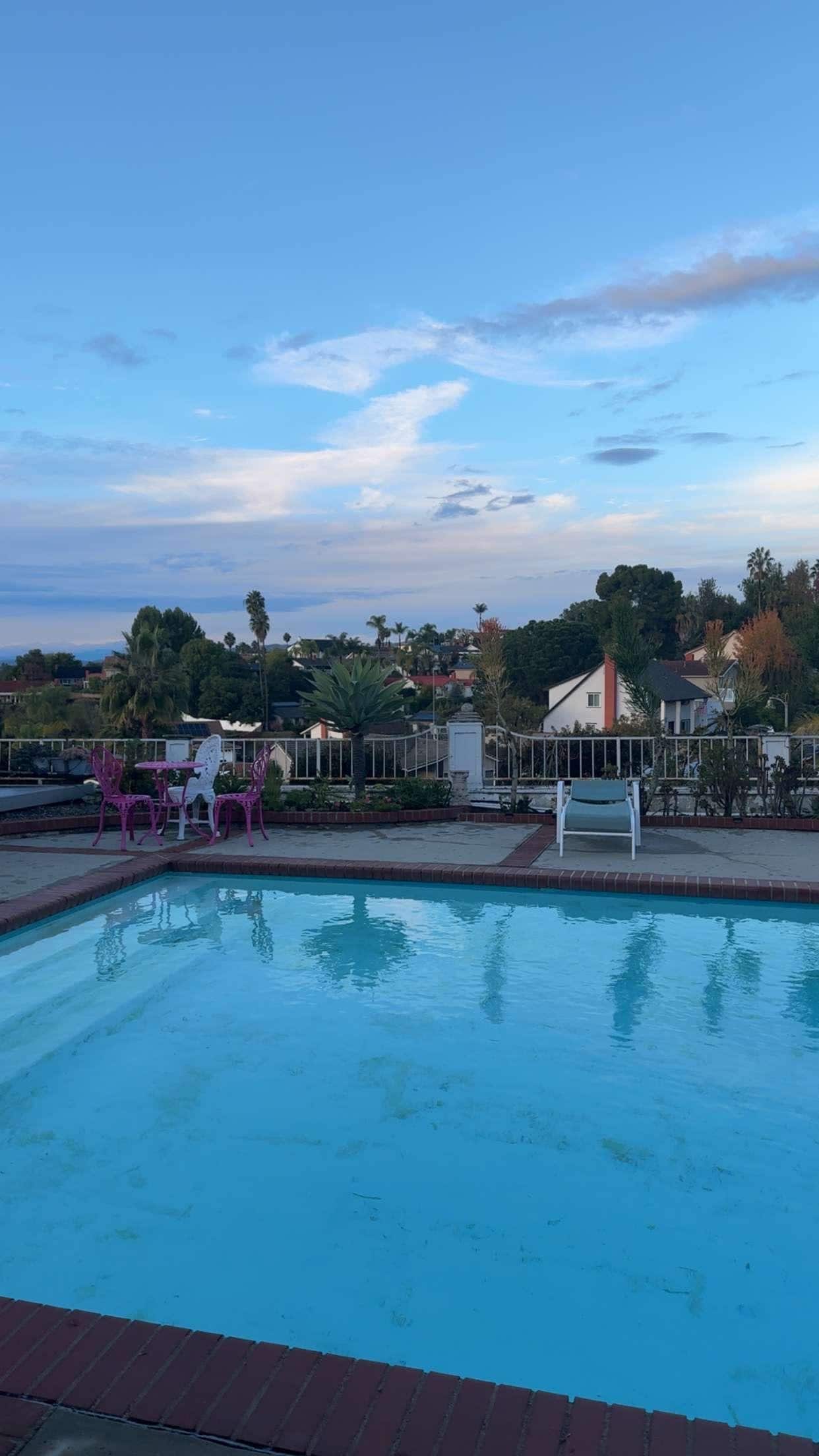Back yard has 2 BBQ one working with gas and other with charcoal to have the both choices and some furniture and a big , deep pool.