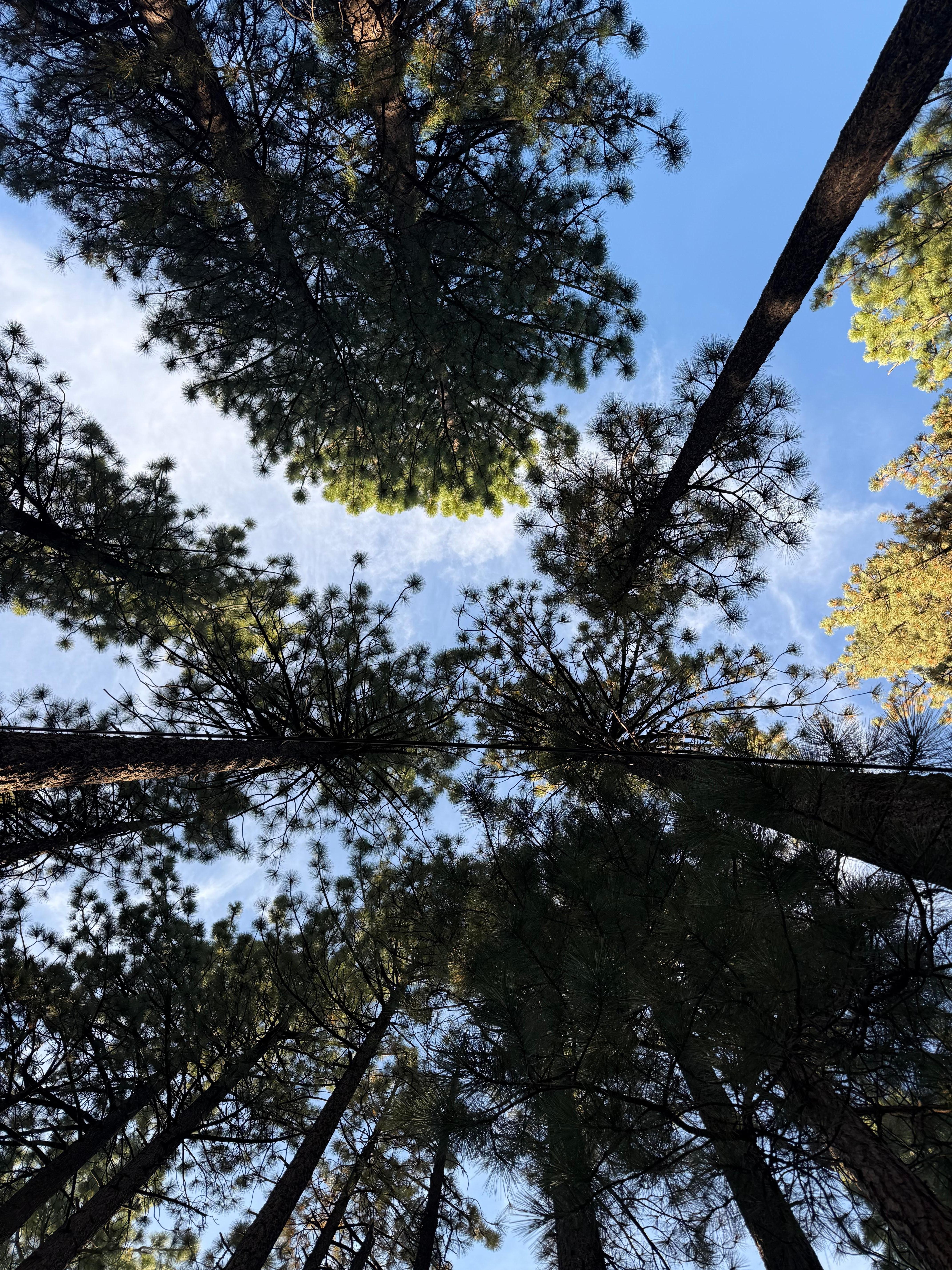 The cabin property is set back from the main road and touches preservation lots, so there are lots of tall pines and, though there are neighbors, you are enfolded in lots of forested green for privacy.