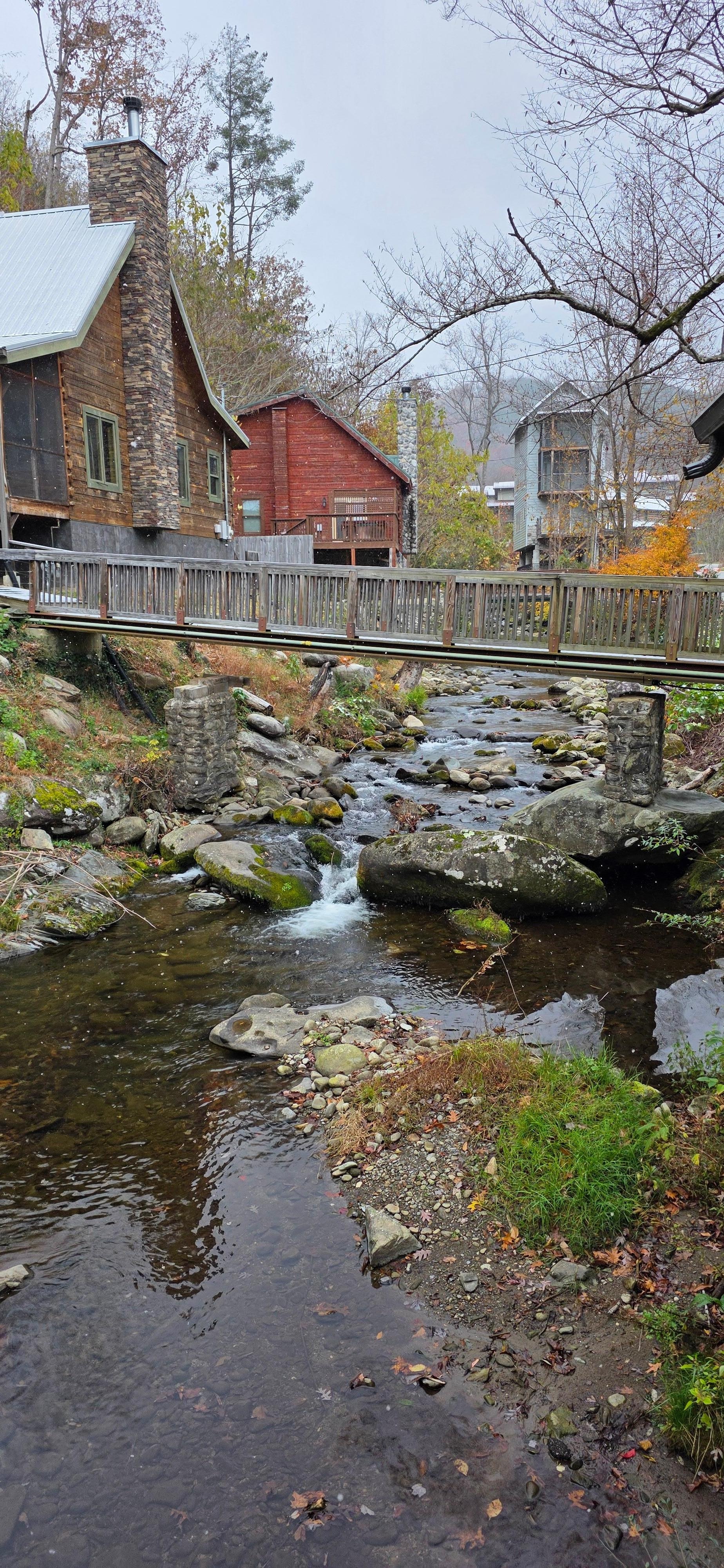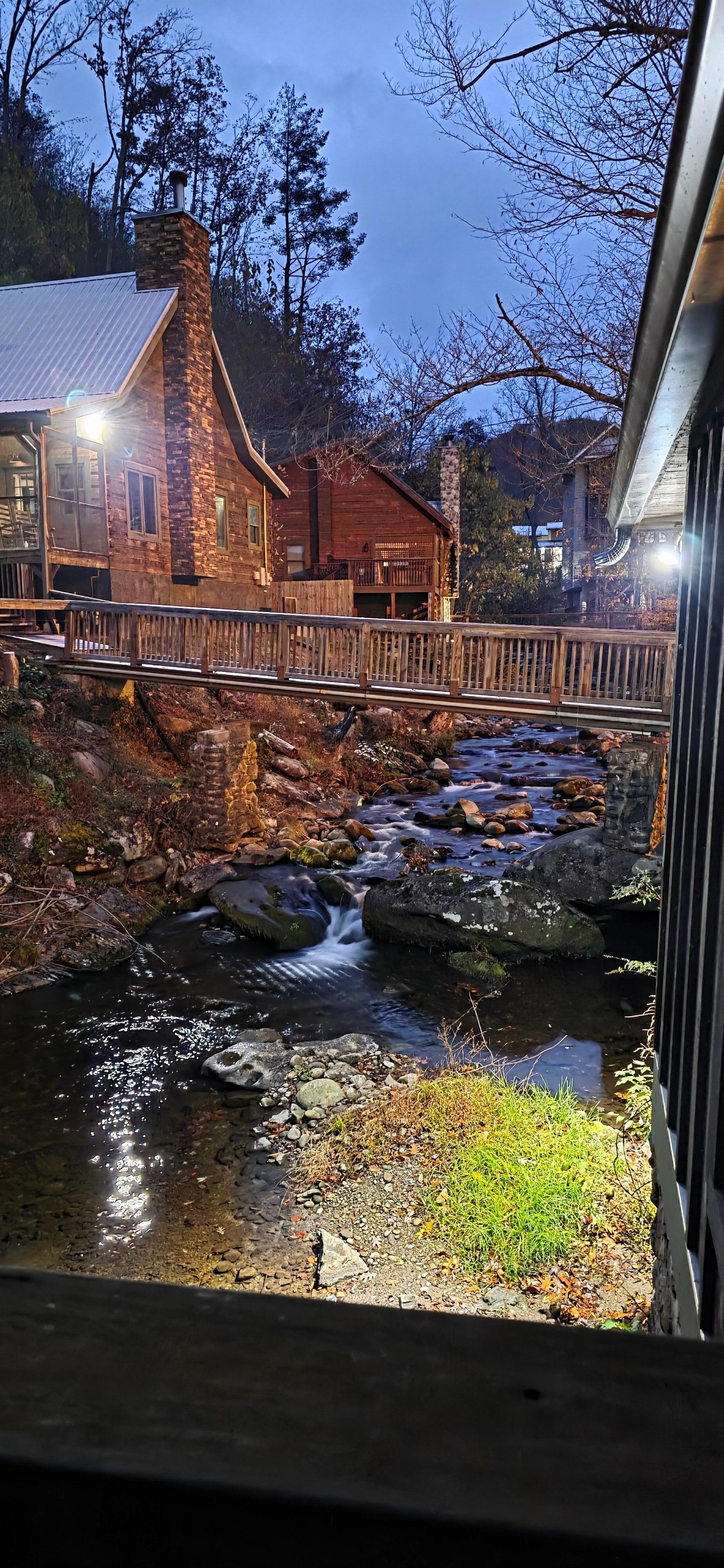 This cabin sits directly over the historic Roaring Fork Stream—one of the most tranquil and scenic areas of Gatlinburg. Surrounded by forest but just 0.9 miles from the Parkway, you get the perfect mix of nature and access. Feel the breeze from the water, listen to the stream below your deck, and enjoy being walking distance to shops, restaurants, and local attractions—all while staying in your own private slice of the Smokies.