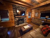 Located only minutes from the heart of downtown Gatlinburg, TN, this gorgeous cabin is located in the Roaring Fork area. The mighty Roaring Fork Stream is stocked weekly with trout, so don't forget to pick up a fishing license and have some fun!
