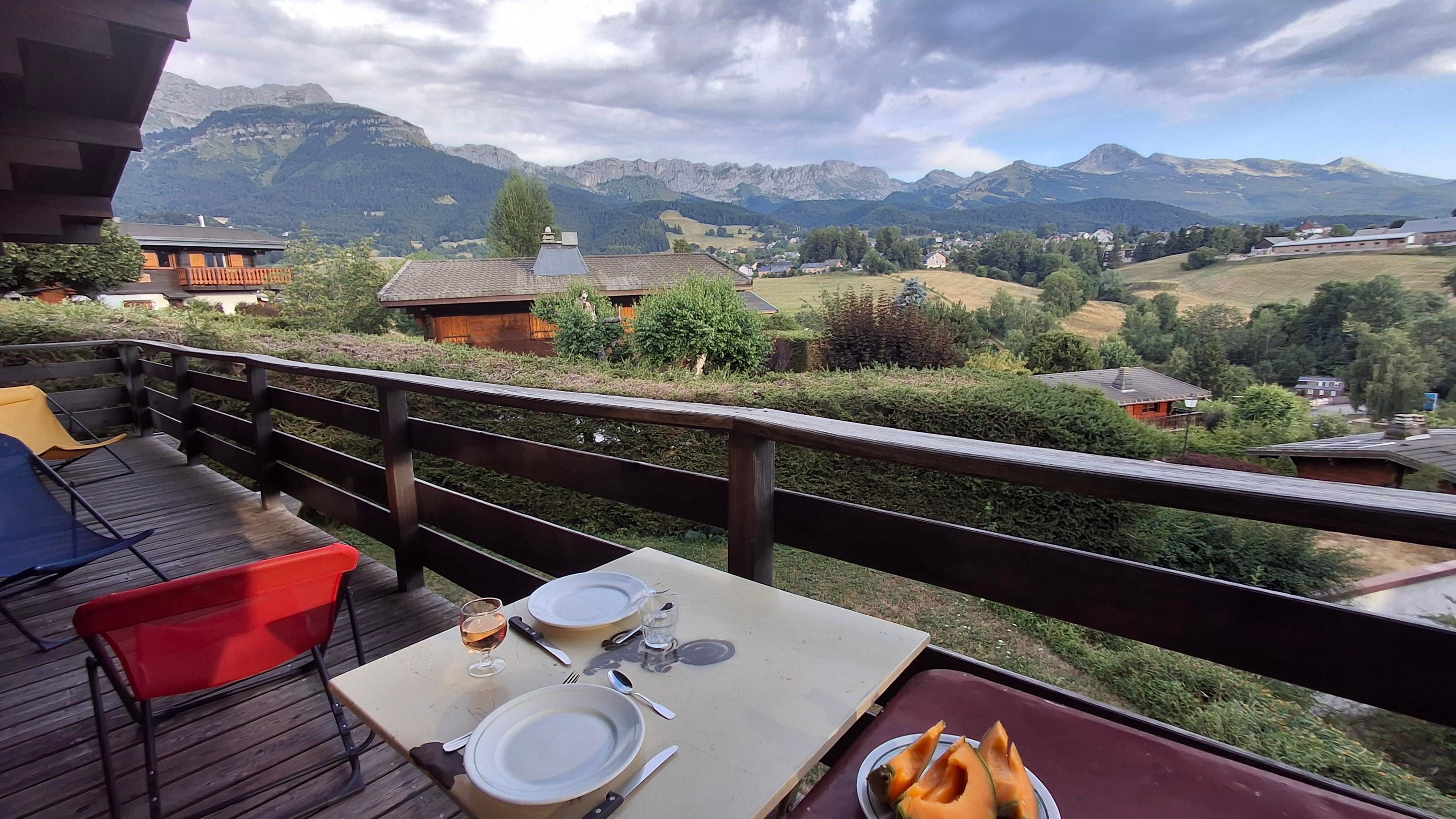 The chalet is accessed by a staircase on the east side which leads to a large balcony. On the opposite side and around the chalet, the hillside garden offers a beautiful playground for children.