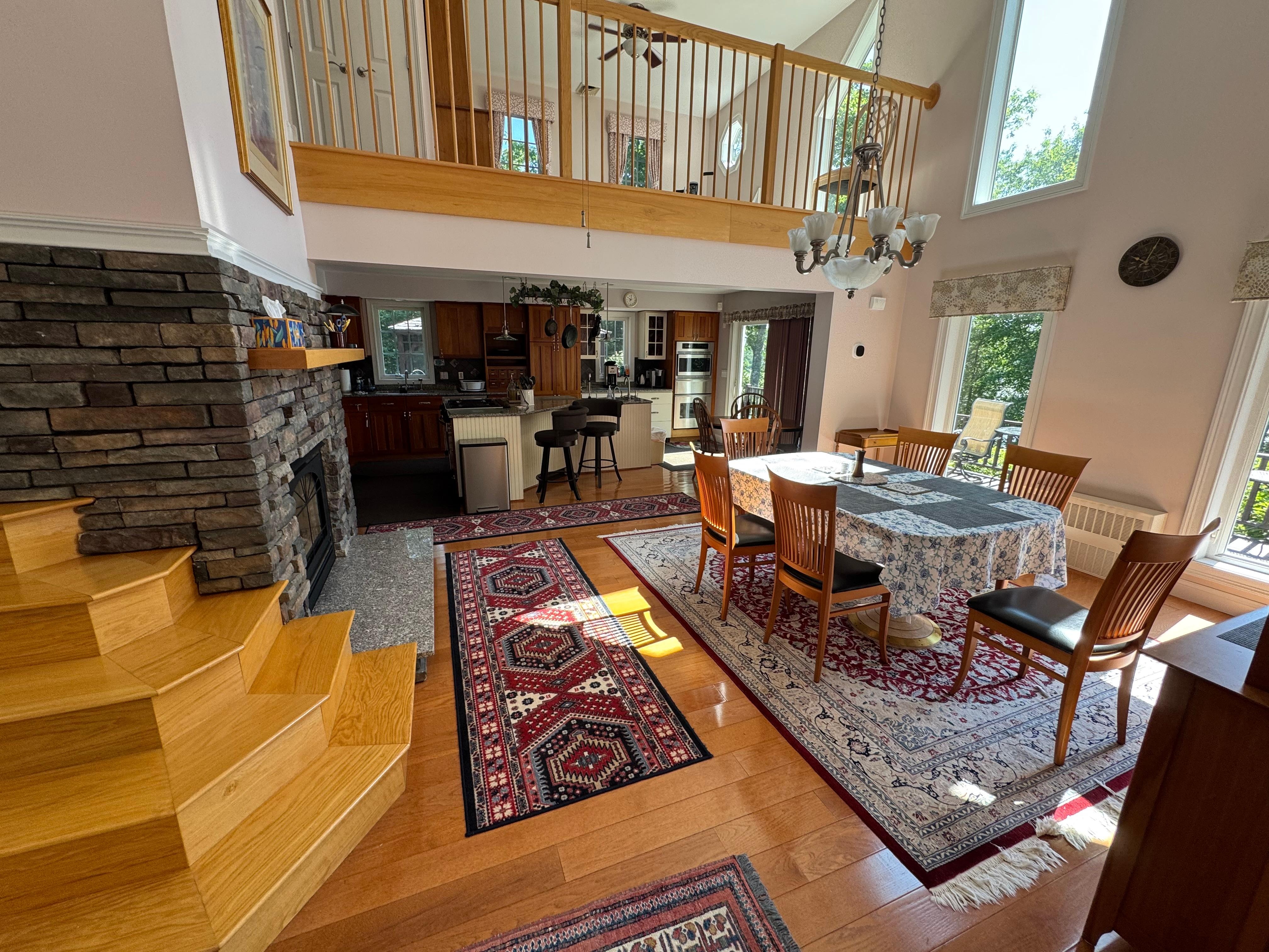 All rooms of the house have central air conditioning/heating units, and most rooms have ceiling fans. There is a bedroom with a queen bed on the first floor. On the second floor there is one bedroom with a queen bed and a second bedroom with two twin beds. The 3 bedrooms offered do not have “en-suite” attached bathrooms. The full bathrooms on each floor are located down the hallway from the bedrooms. There is a second floor TV room and an open loft area for stretching and exercising. The kitchen is well supplied with cooking utensils and equipment. The formal dining room is spacious and inviting. There is a breakfast nook table in the kitchen area.