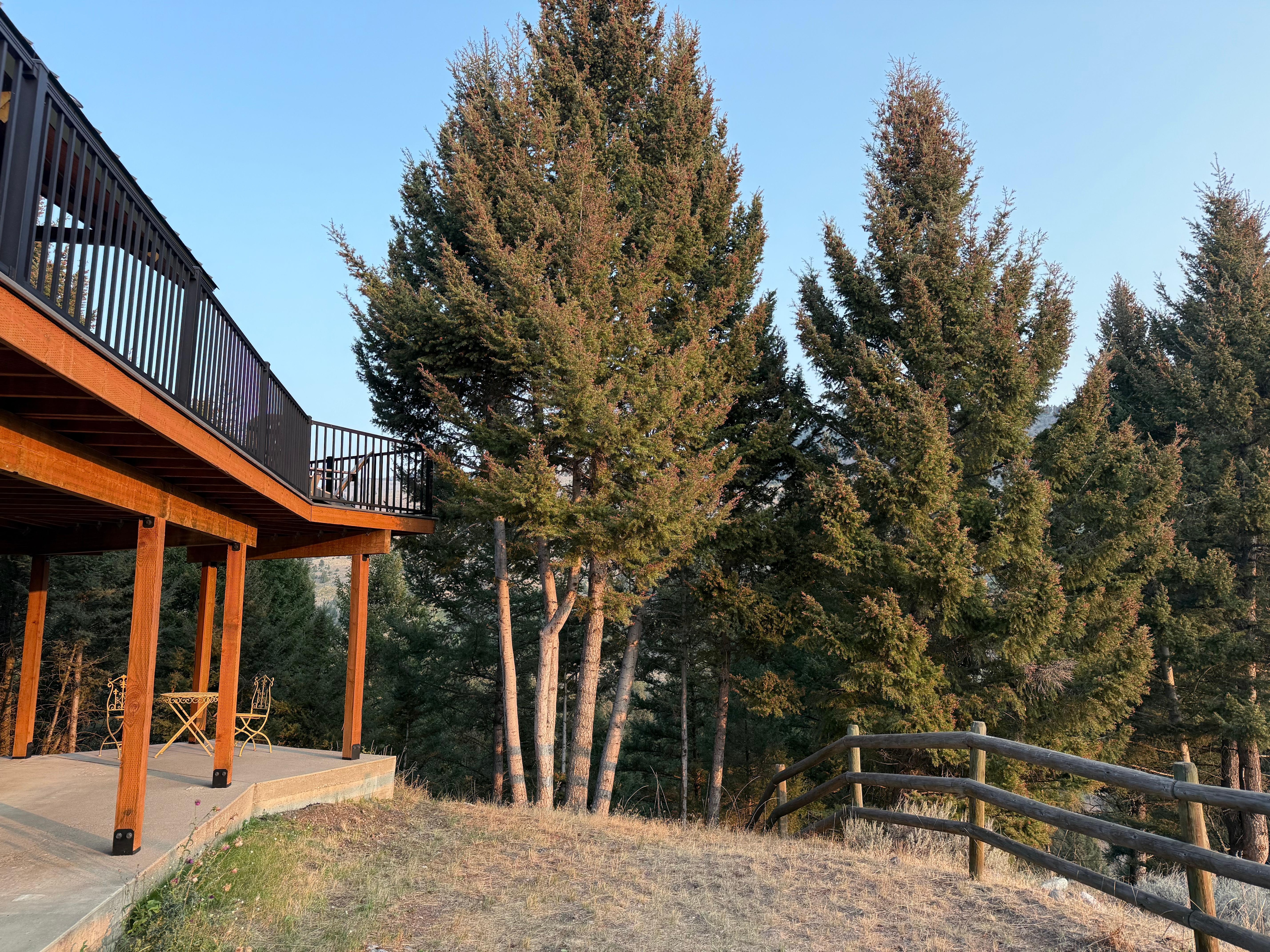 Watch the wildlife across the beautiful mountain side or take a hike down to Rock Creek. You're welcome to fish the creek as well.