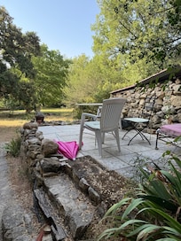 In a 15 hectare property, on the ground floor of a charming little farmhouse surrounded by nature, nestled in the crispest of the Luberon valleys, the entrance to your accommodation which opens onto a terrace overlooking the garden is therefore perfectly independent.