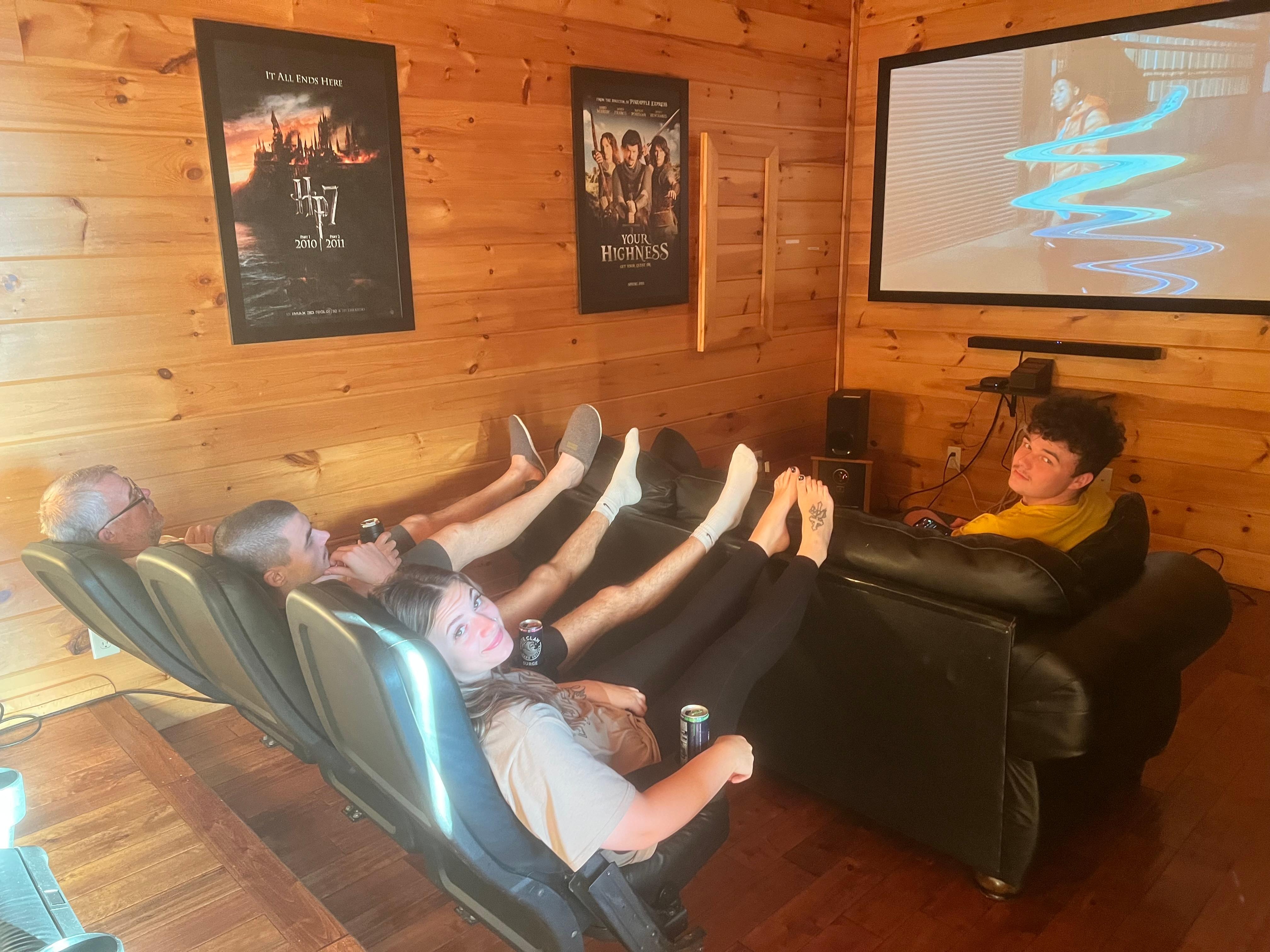 Your group will enjoy gathering in your own brand new 3 bedroom cabin with 180 degree panoramic views! Enjoy your morning coffee on a porch rocker on the covered deck looking at the legendary Great Smoky Mountains. Gather in the theater with your friends and family and watch a move on your 8 foot theater screen. Shoot a game of pool or relax in the hot tub. Prepare in cabin meals in the fully equipped kitchen and dining area. Minutes from all the attractions and the National Park!