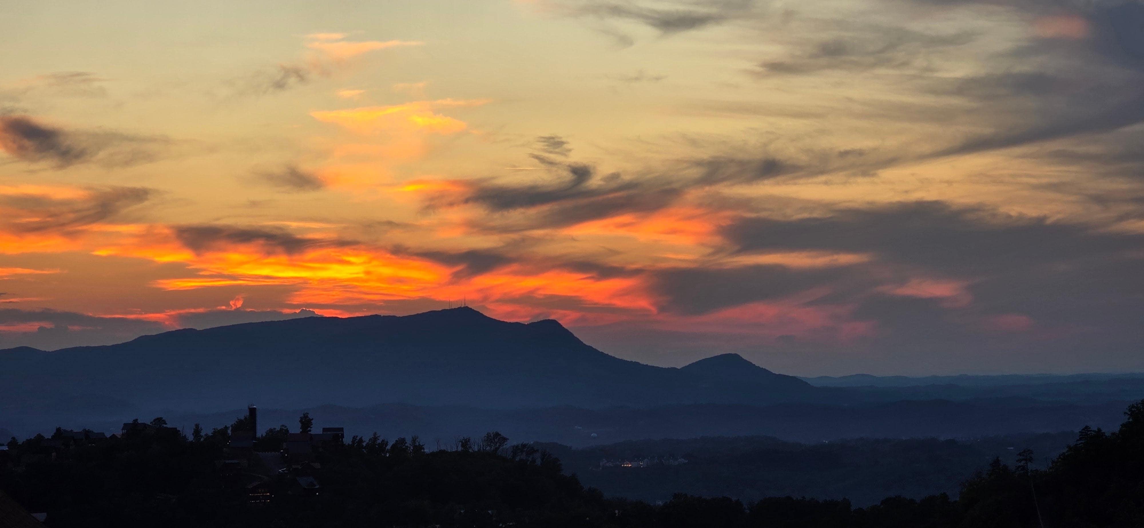 View! View! View! The view from the back mountain side deck and front side deck is spectacular with breath taking sunsets over Bluff Mountain to your left and sparkling night time scene of Sevierville. On a clear day you can see 60-70 miles off the back deck where the Jellico Mountains are which is the Kentucky and Tenneessee boarder. You can enjoy the nightly Dollywood fire works display from the back deck during the summer months and the flickering night lights of Sevierville & Pigeon Forge at night in the distance or The LED ferris wheel at the Islands in Pigeon Forge. There is a view from every room!