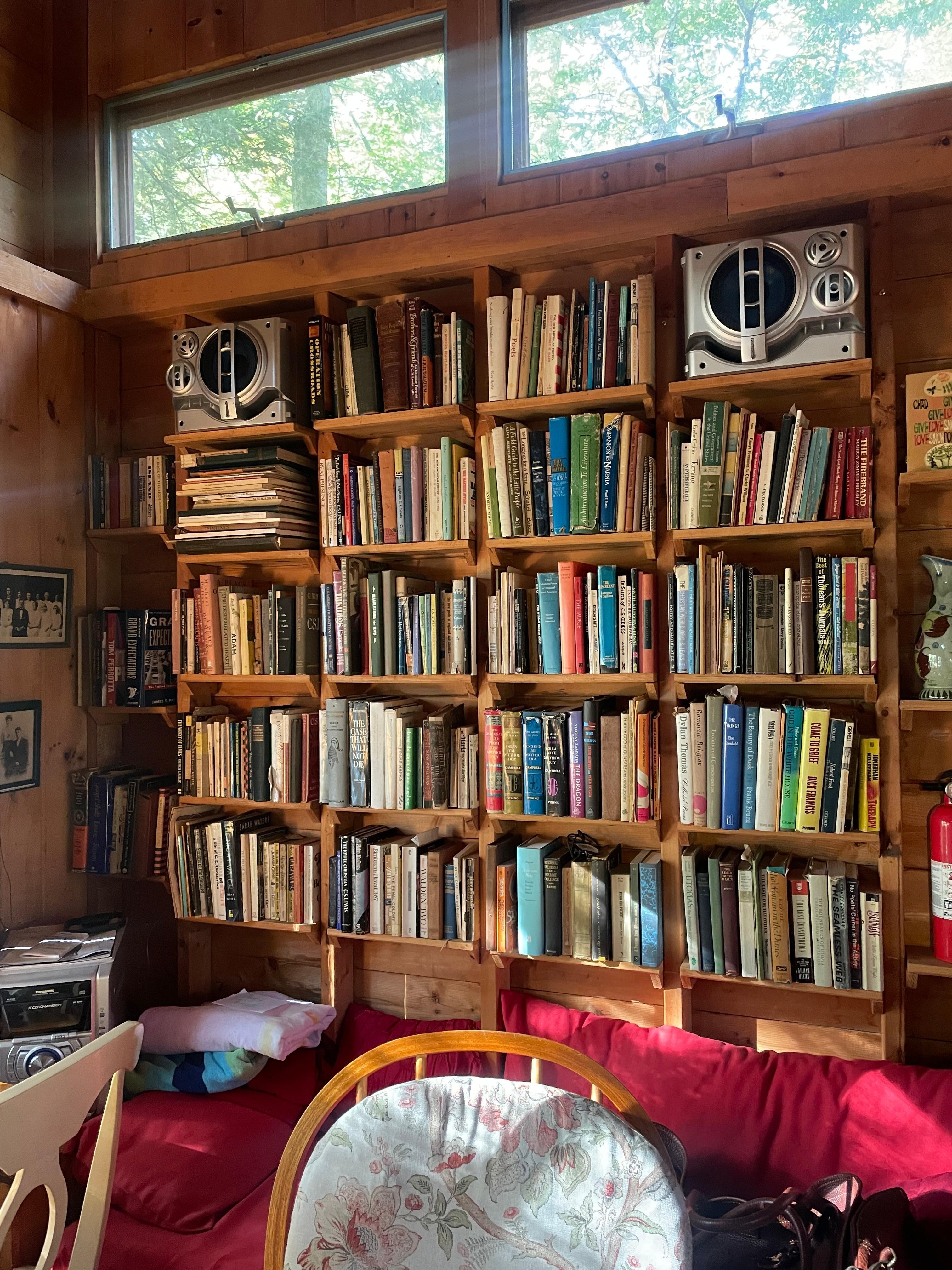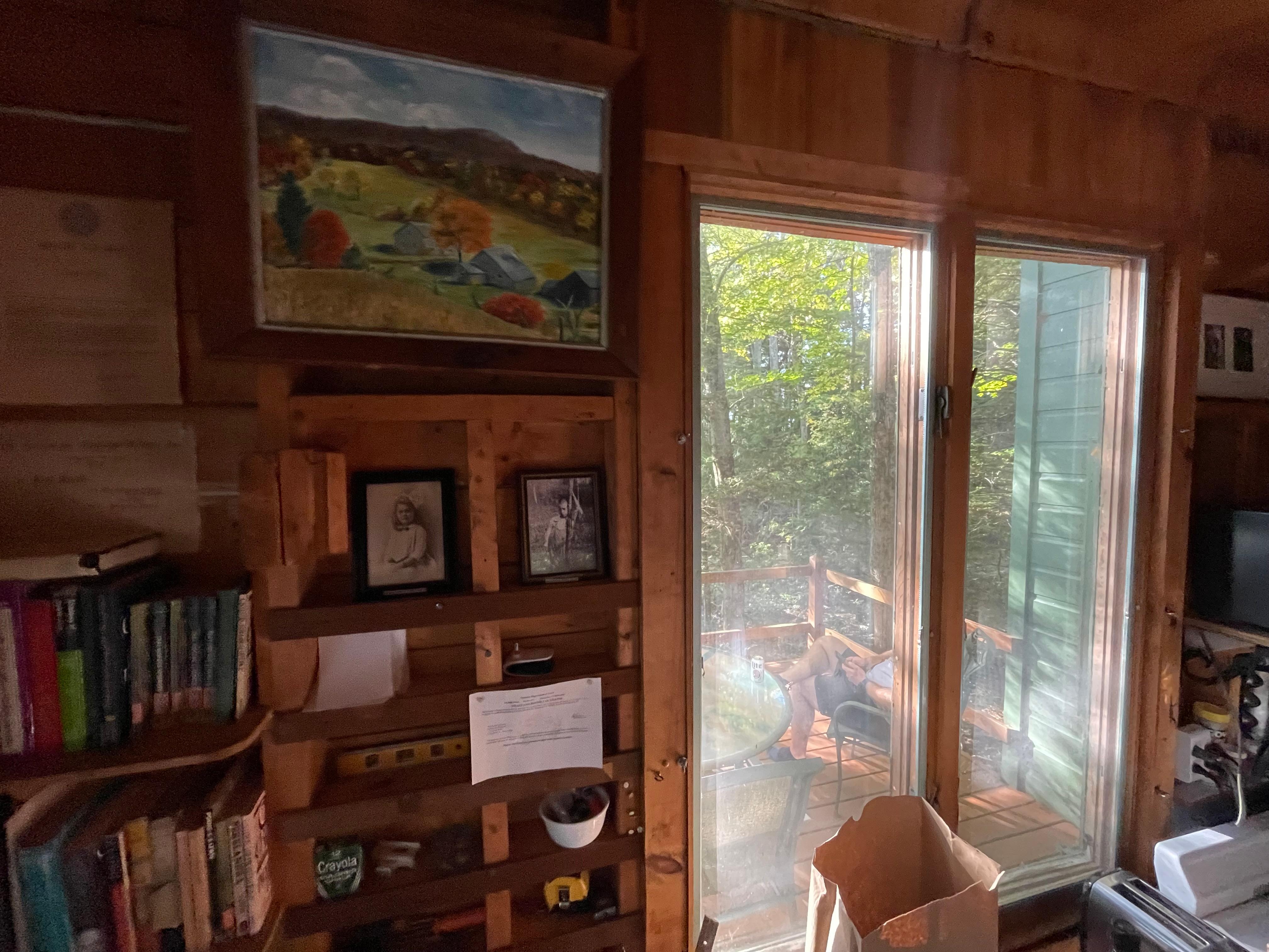 Beautiful, private, comfortable, spacious, studio cabin in wooded area steps from lake. Originally a writer's studio, this cottage is part of a two-cottage compound. Cabin is self contained with large deck and has all the comforts of home: well equipped kitchenette with microwave, stove, fridge, freezer, heat pump for heat and AC, bathroom with shower, queen bed, high speed Internet. Everything provided including linens/blankets, canoe, kayaks, rowboat, life jackets, huge shared dock, fire pit. Lake views. Steps from lake. Three night minimum stay at $130 per night plus 12% Vermont Room Tax..