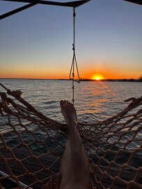 Step outside to the patio to breathe in the fresh air, fire up the grill, or head down to the private floating dock. Outfitted with a high-end sectional, two hammock chairs, and slips for both a boat and two jet skis, the dock is a favorite hangout spot. For on-the-water fun, guests can enjoy 2 kayaks, two adult fishing kayaks, a paddleboat, and two paddleboards—all included with your stay.