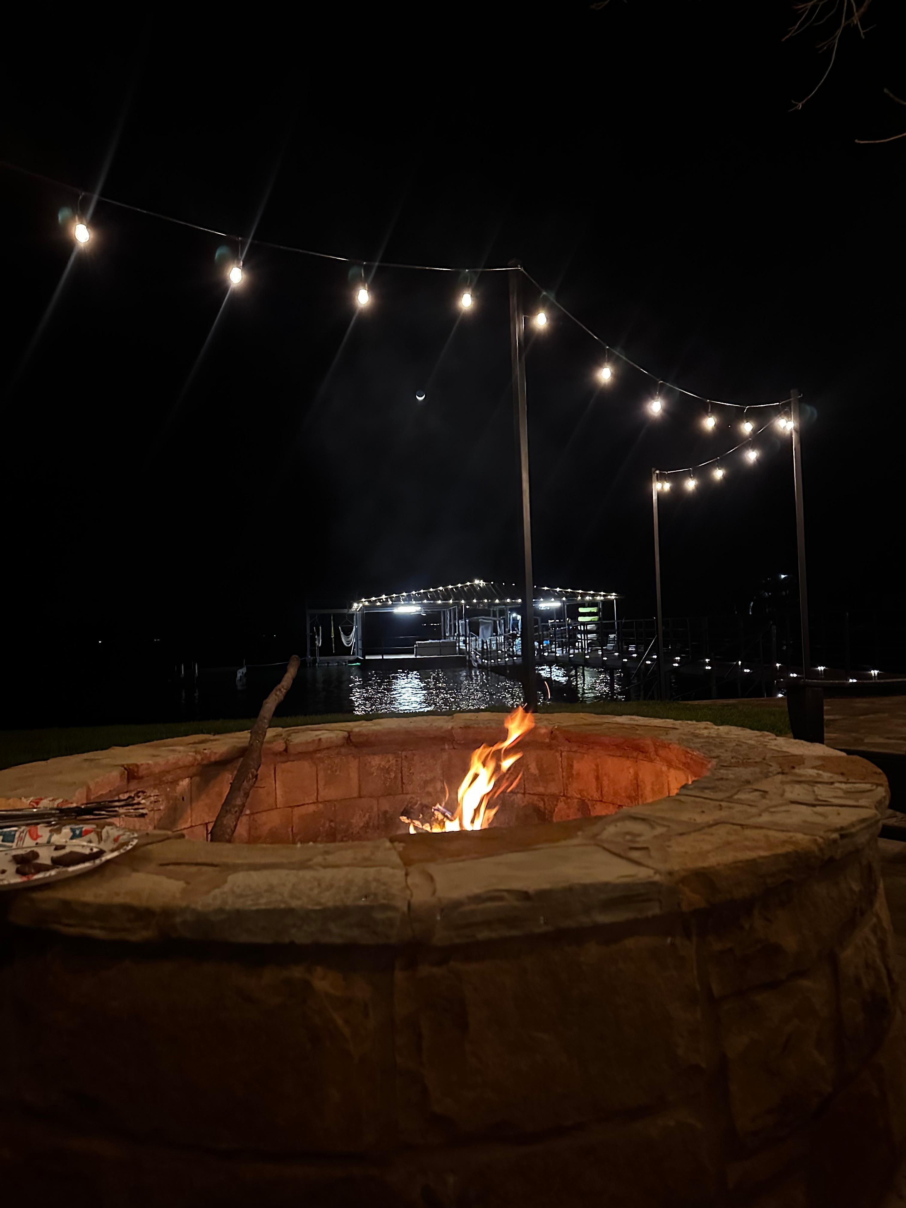 As the sun sets, gather around the fire pit to toast marshmallows and take in the peaceful beauty of the lake.