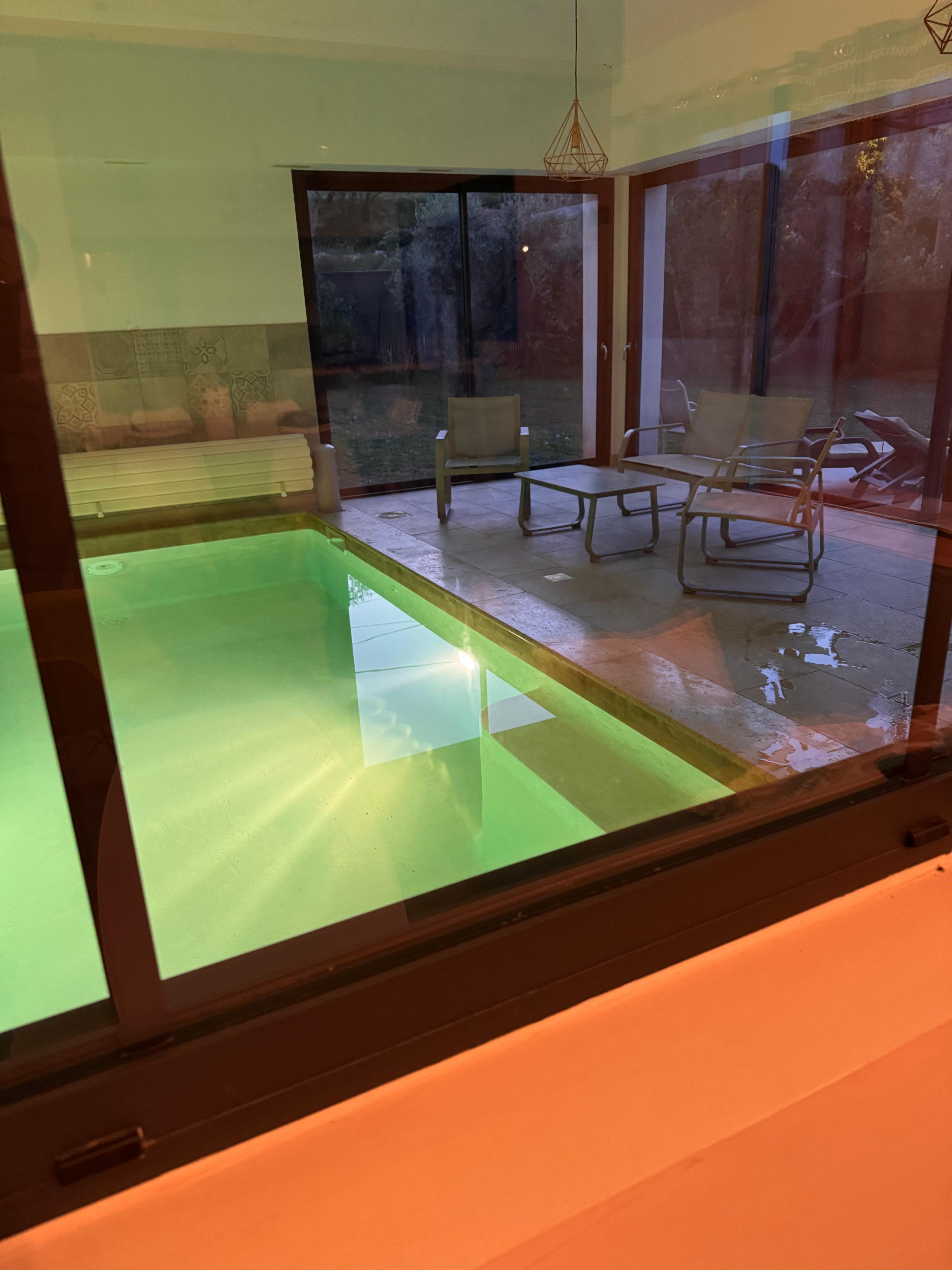 From the living room, you access the heated swimming pool (5 * 3), and its counter-current swimming. Possibility to open all the bay windows and take full advantage of nature and the garden. Moment of relaxation guaranteed!