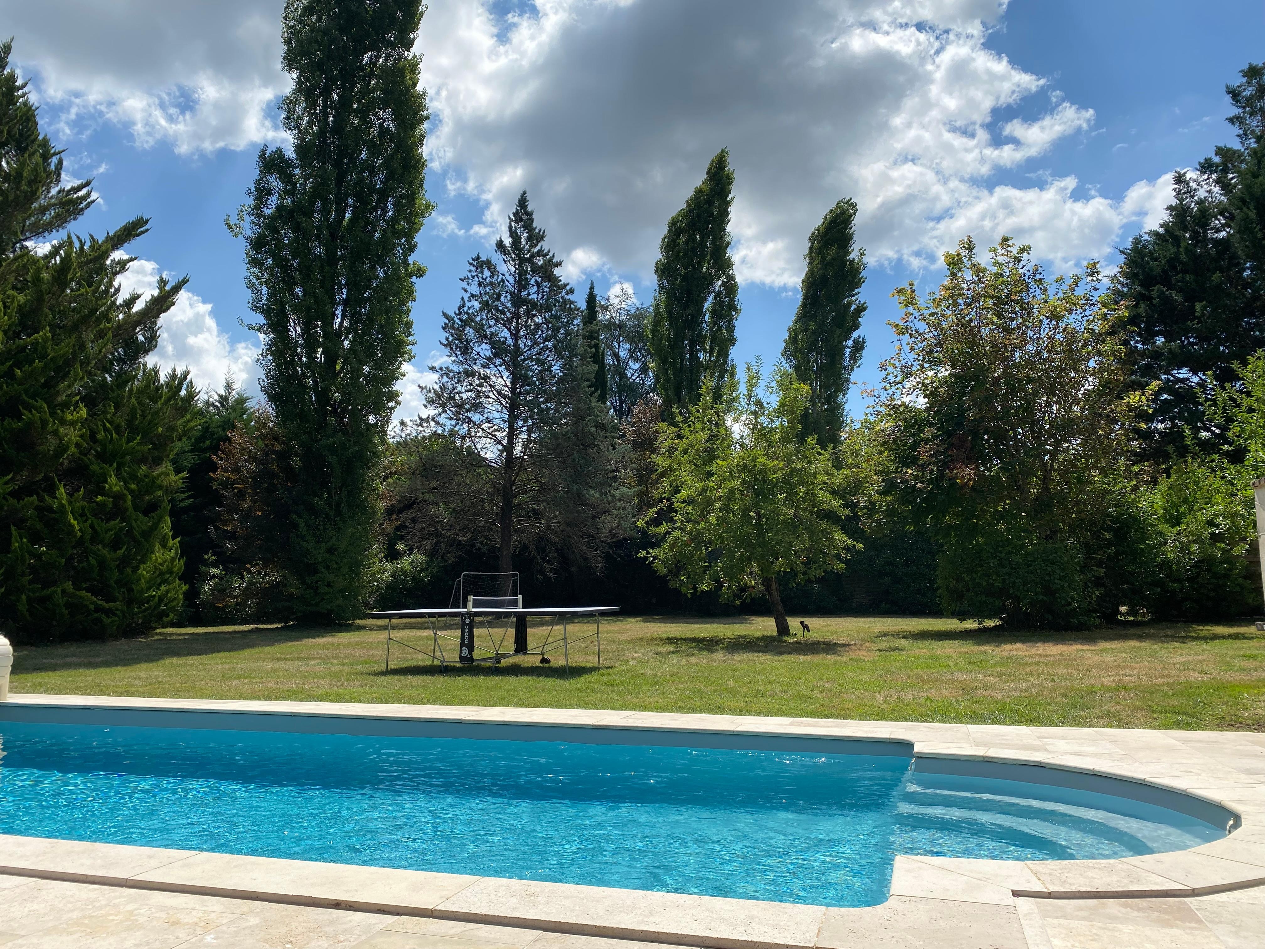 * the private pool, heated from May to September, measures 10m x 5m, and has a shallow end of approximately 1m20, and a deep end of 2m. It is secured by a floating hard cover. A barbecue, table and chairs, sun loungers and parasols are set on the terrace surrounding the pool.