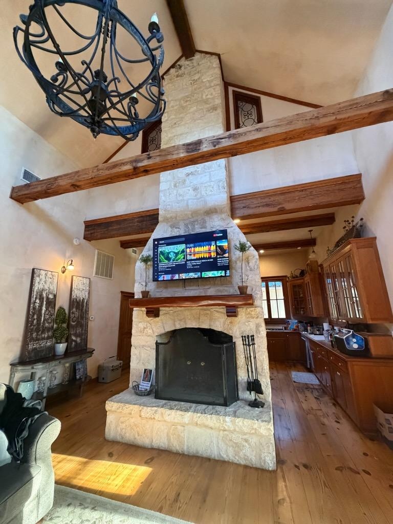Bella Manor house is a stunning hill country vacation rental in Fredericksburg located just two blocks north of Main Street. It is home to two beautiful suites, the Main Suite which is a large three bedroom, three bath suite with large dining room and full kitchen, and the Carriage Suite which is a cozy one bedroom, one bath suite. Each suite has a private entrance and unique distinguishing features. The original home was located at the old Fredericksburg Icehouse. Noted builder, Tony Martin, used the beautiful beams, the kitchen and the sunroom as a base around which to build the current Hill Country style home. The third suite is the exquisite Lavender Suite, a romantic retreat that is just perfect for a quiet getaway!