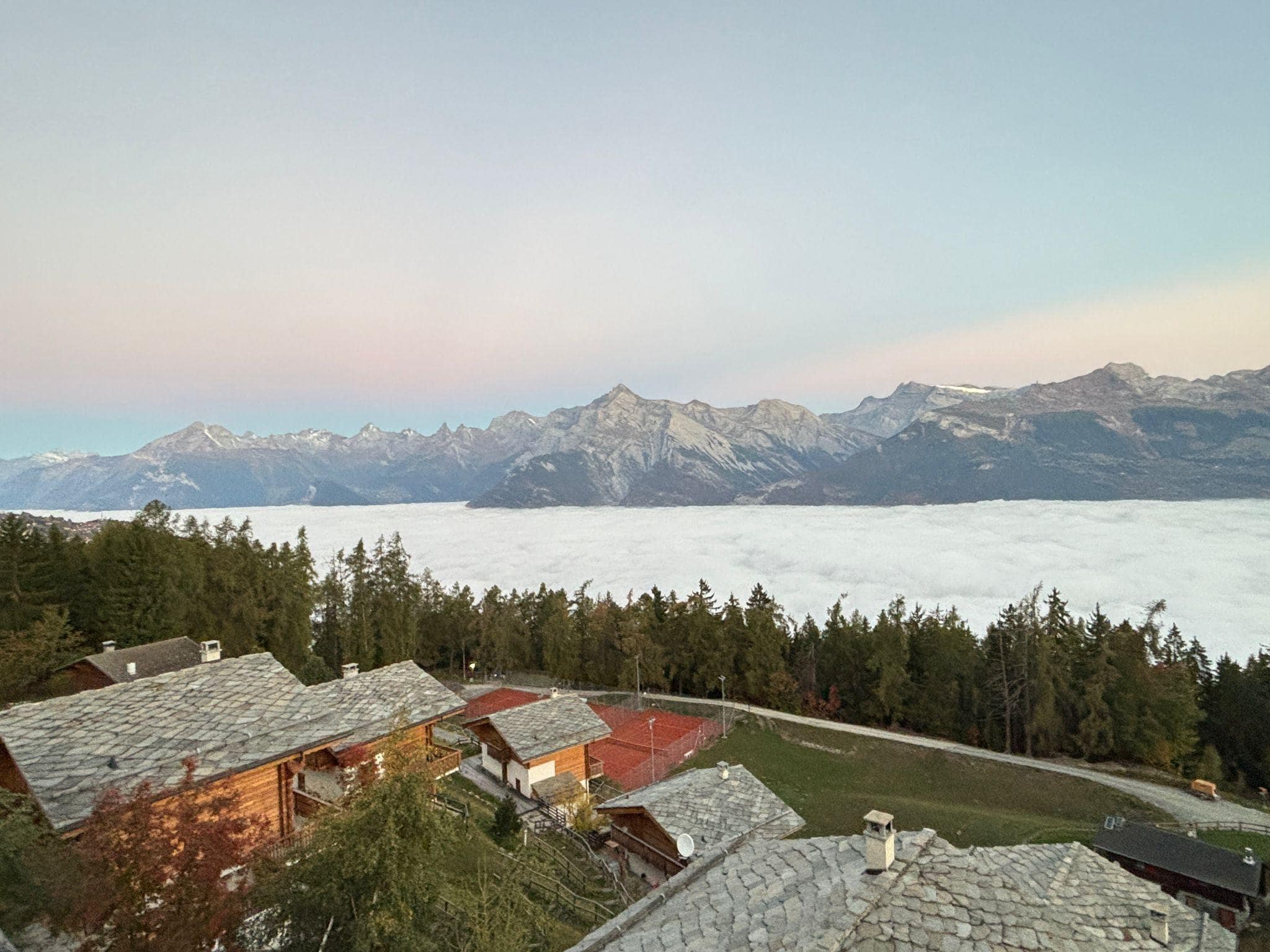 You are in the Egg Chalet in Switzerland, located next to the ski slopes, about 20 minutes walk from the center of the resort.