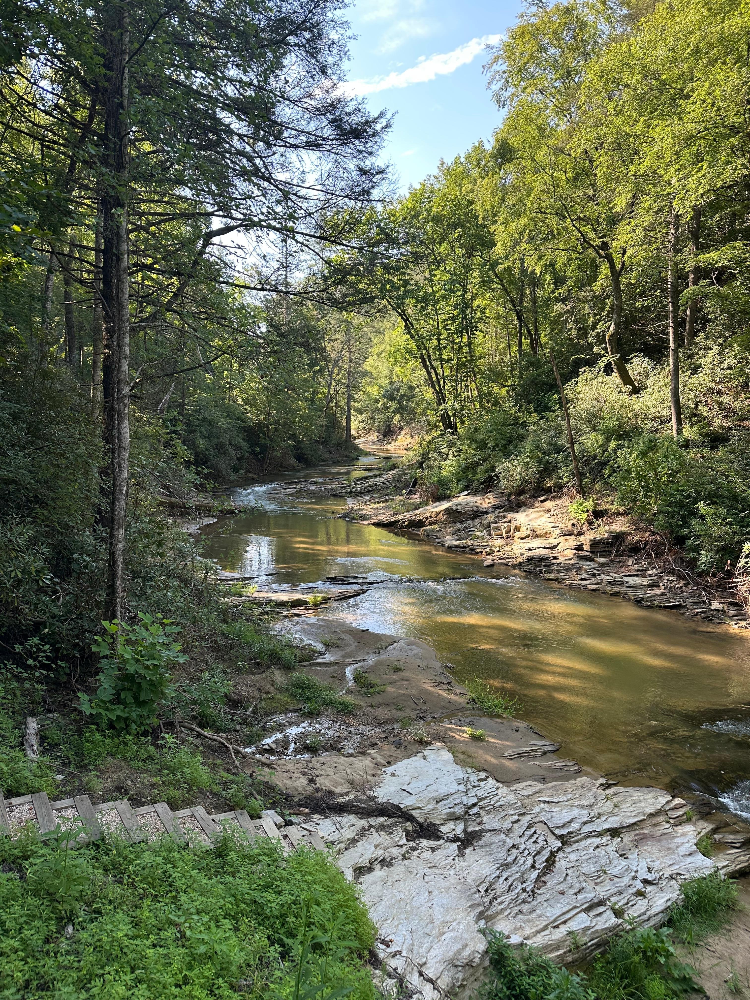 • Pathway steps down to deck and river for fishing, floating, wading, or sunbathing.