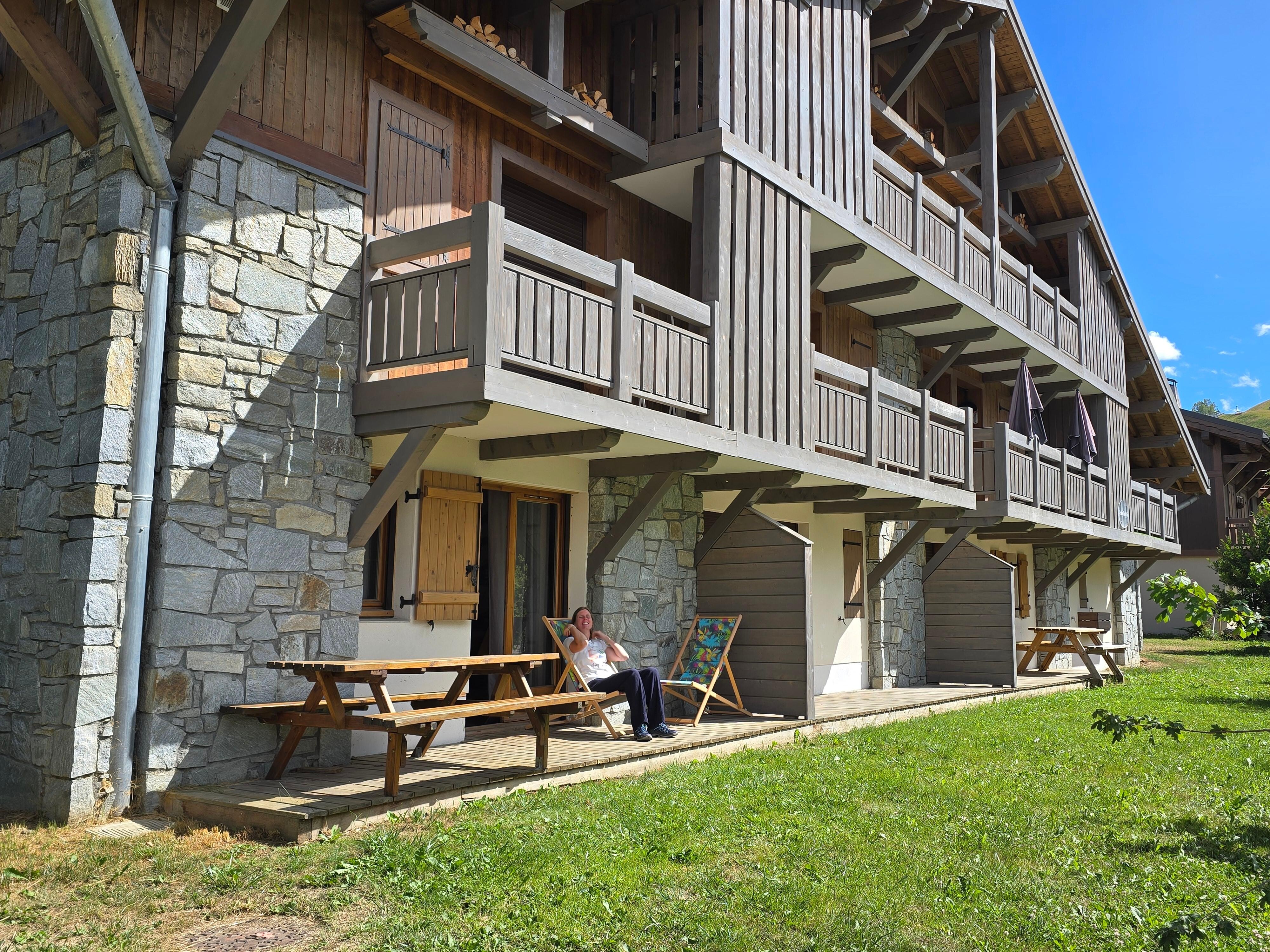 Accommodation for 4/6 people in a luxury chalet "the alpine garden", 3 rooms with terrace completely renovated with equipped kitchen, 2 closed bedrooms, one with private bathroom. Near the Lac de la Buissonnière leisure center. View of the white valley. Very quiet area, located 100m from the small needle chairlift accessible by the track located 40m. Ski back to the chalet. 400m from the shops on foot, downtown 10min by free shuttle, stop 25 located in front of the residence.