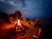 An oversized outdoor fire-pit and cozy Adirondack chairs will keep the conversations going way into the night. Gaze up and you will be stunned to see unobstructed views of innumerable stars.