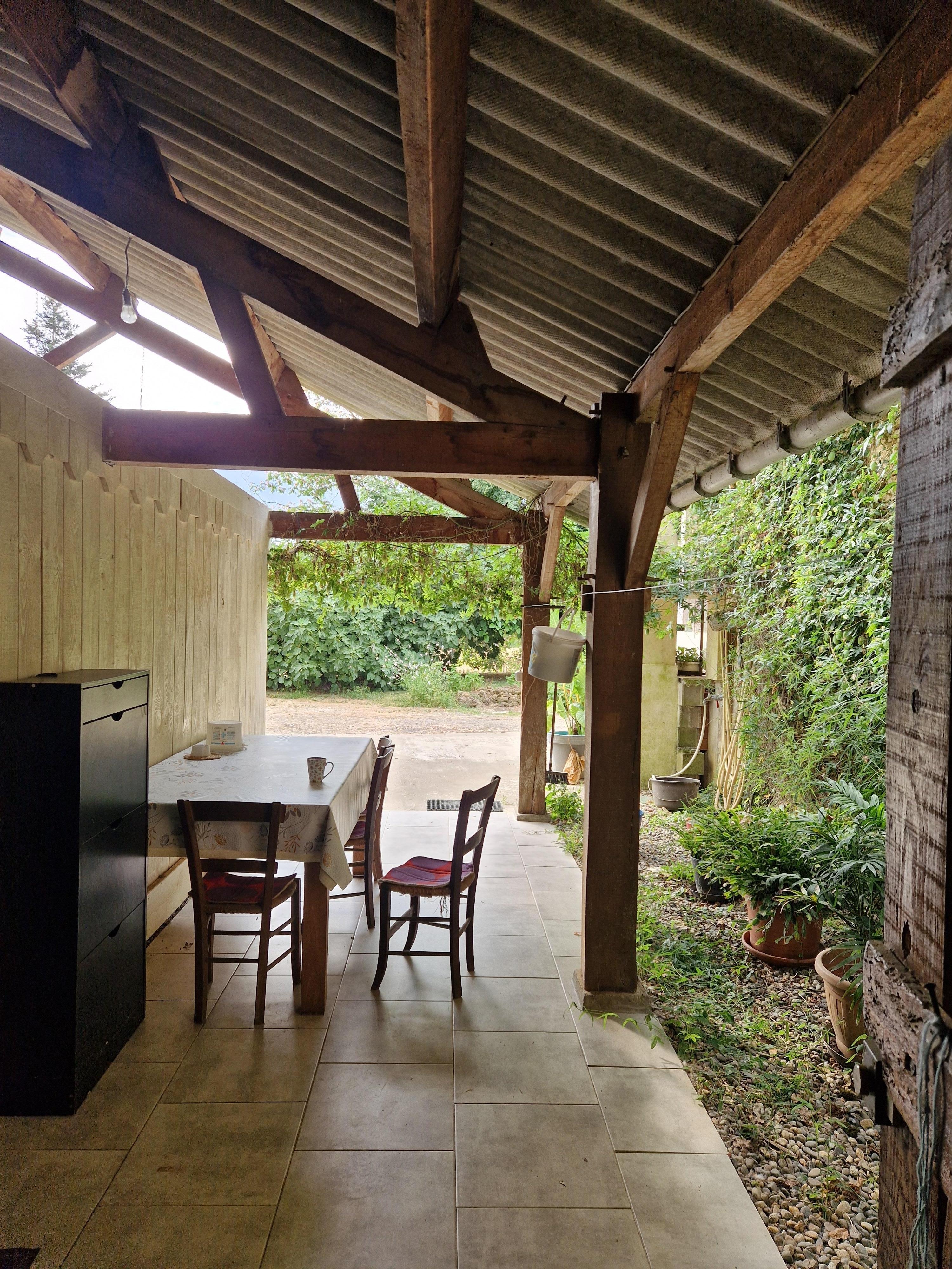 La propriétaire passe sans arrêt dans un local qui jouxte le studio et étend son linge juste a côté de la table extérieure.