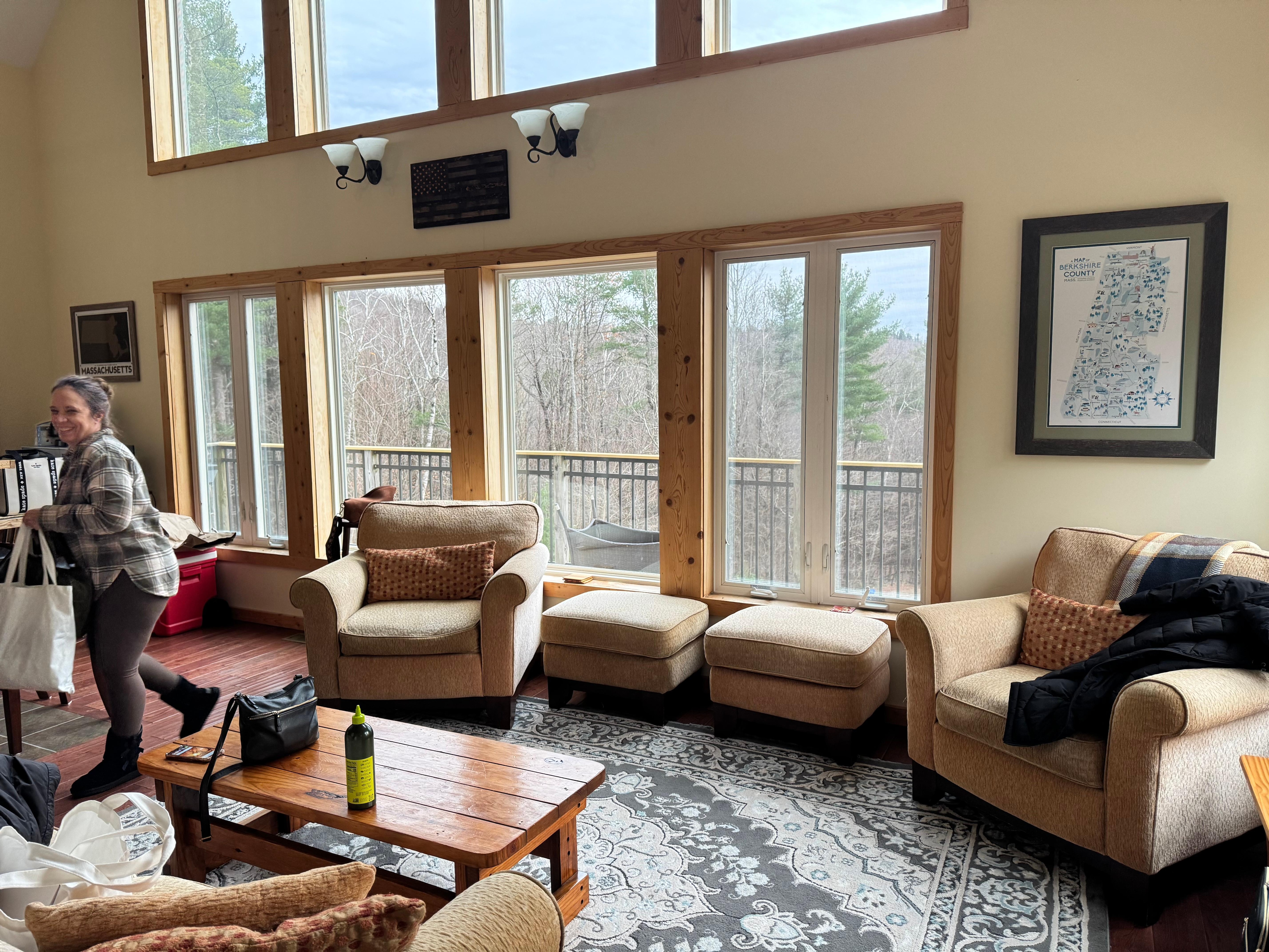 Wake up to a beautiful view from this A-frame home built by our family. Unpack and unwind! Spend the day hiking(or snow shoeing) the property(60 acres), go into town for a great meal and entertainment and finish the day by the firepit roasting s'mores. The sunset is absolutely breathtaking (visible from inside or outside). This house is our retreat and we invite you to enjoy the calmness of the area and to Slow Down. Unplug in the Berkshires as we so enjoy doing. Tons of activities in every season to enjoy in the Berkshires!