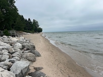 Unique to this part of Lake Michigan, the area under the water and on the beach is covered in blond, finely grained sand.