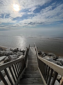 We have a ladder and stairs to the water and the beach.