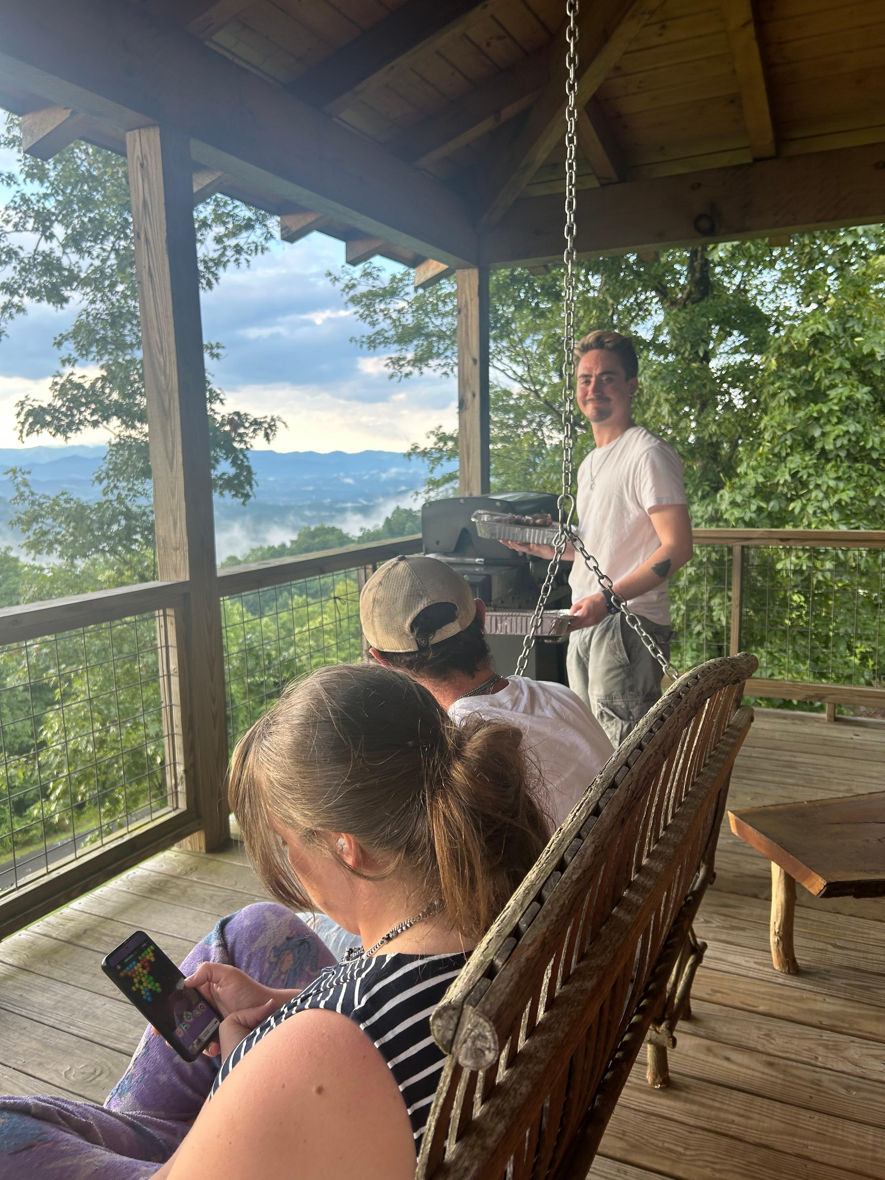 We have two decks that face the NC & TN mountain ranges. Out of the back of the home you have a beautiful view of the GA mountain ranges! The bottom deck has an over sized swing and our main deck has a swing, a bench, 4 rocking chairs and a gas grill that is hooked to a large propane tank so you don't have to worry about running out of gas during your cooking on the grill.