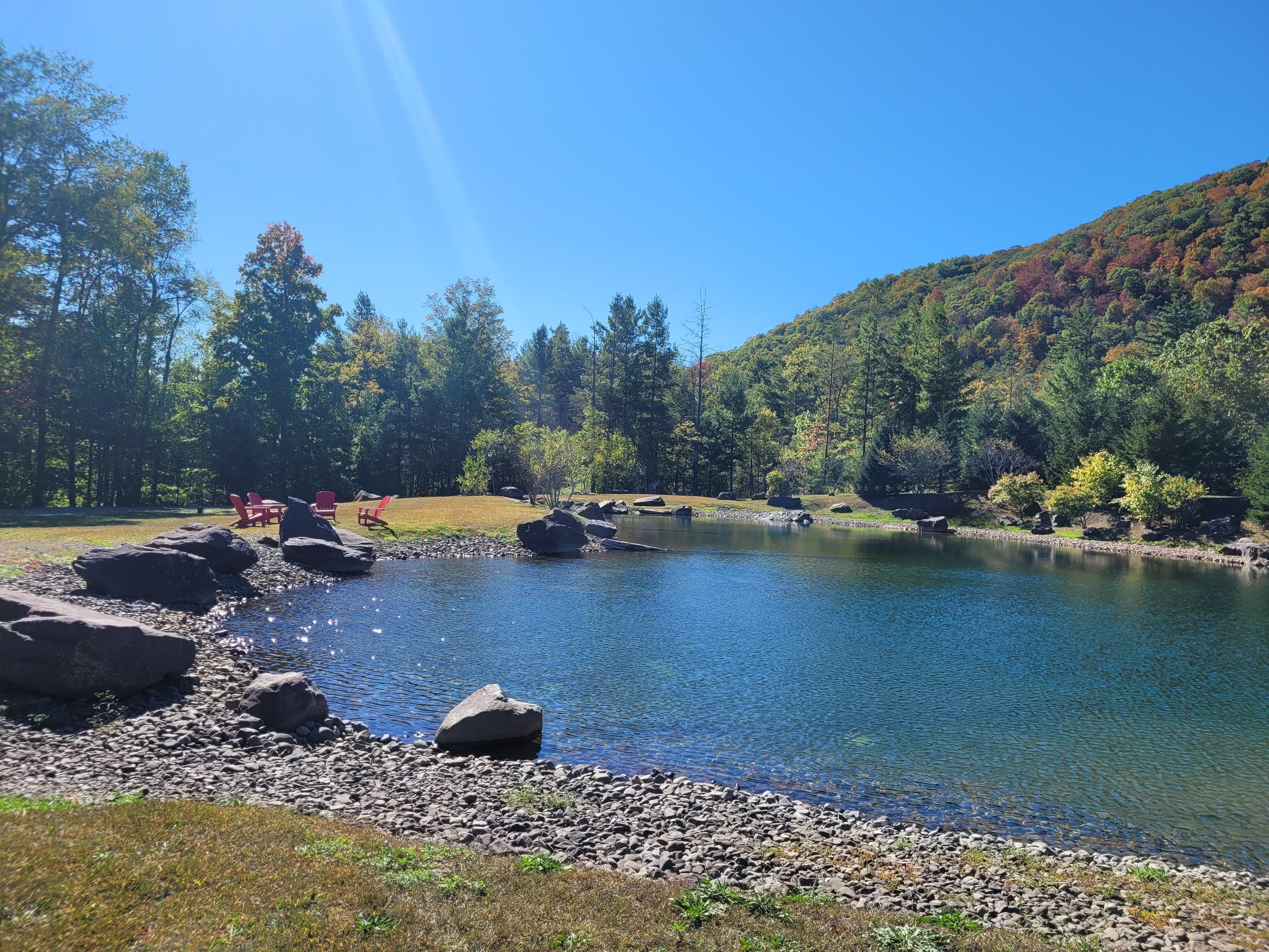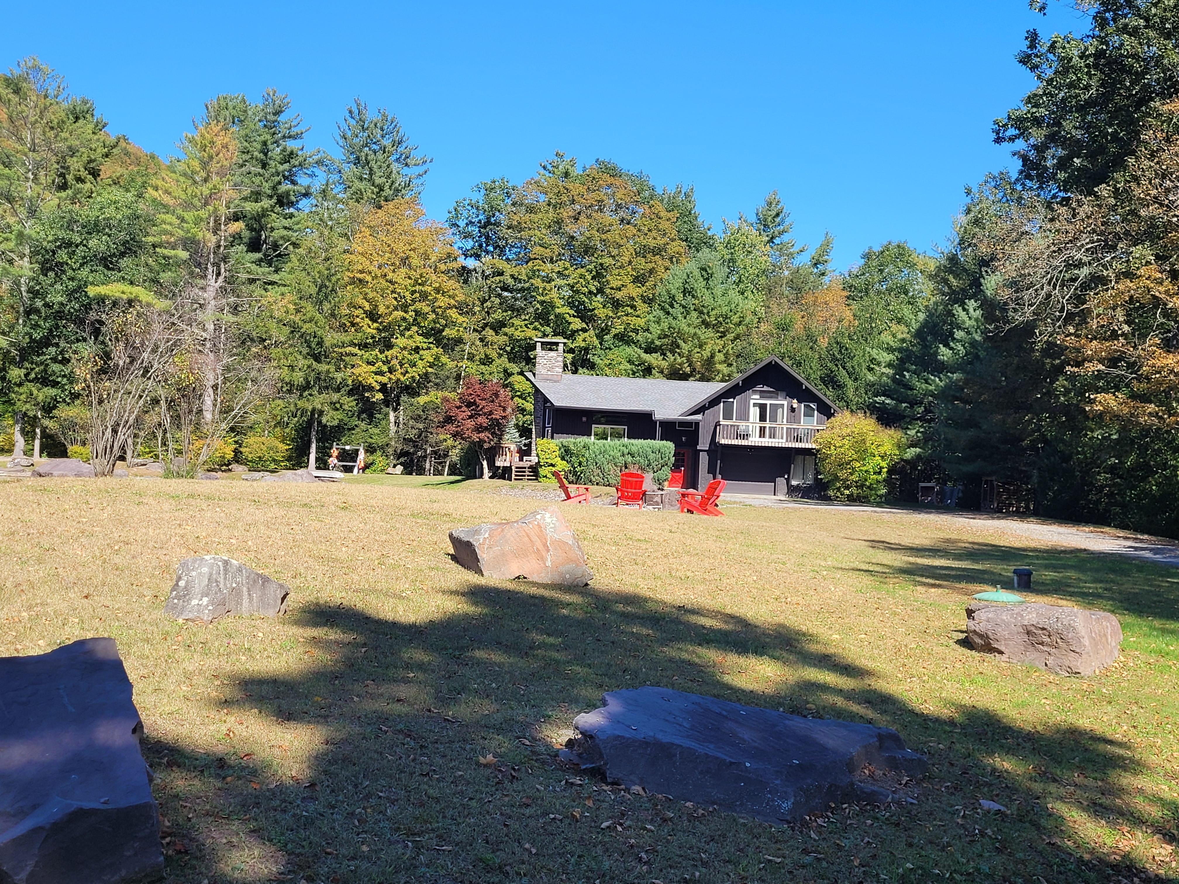Wake up to stunning mountain views and enjoy a coffee next to your own private lake surrounded by 5 secluded acres of the bucolic Catskill Mountains. Relax by the huge wood burning fire, or cook dinner for your friends in the gourmet kitchen. Minutes to skiing at Hunter Mountain, hiking, and the trendy town of Phoenicia. In the warmer months have a swim around the lake (the lake is 15ft deep in the middle & professionally cleaned & maintained - it is the cleanest & clearest private body of water in the area), lie out on the swim platform, take the boat for a spin or simple hang out. We are new here but have 5* reviews on the other booking website.