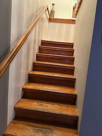Work your way down the stairs as if you're diving into the deep blue sea, and discover the cozy living room with plenty of seating.