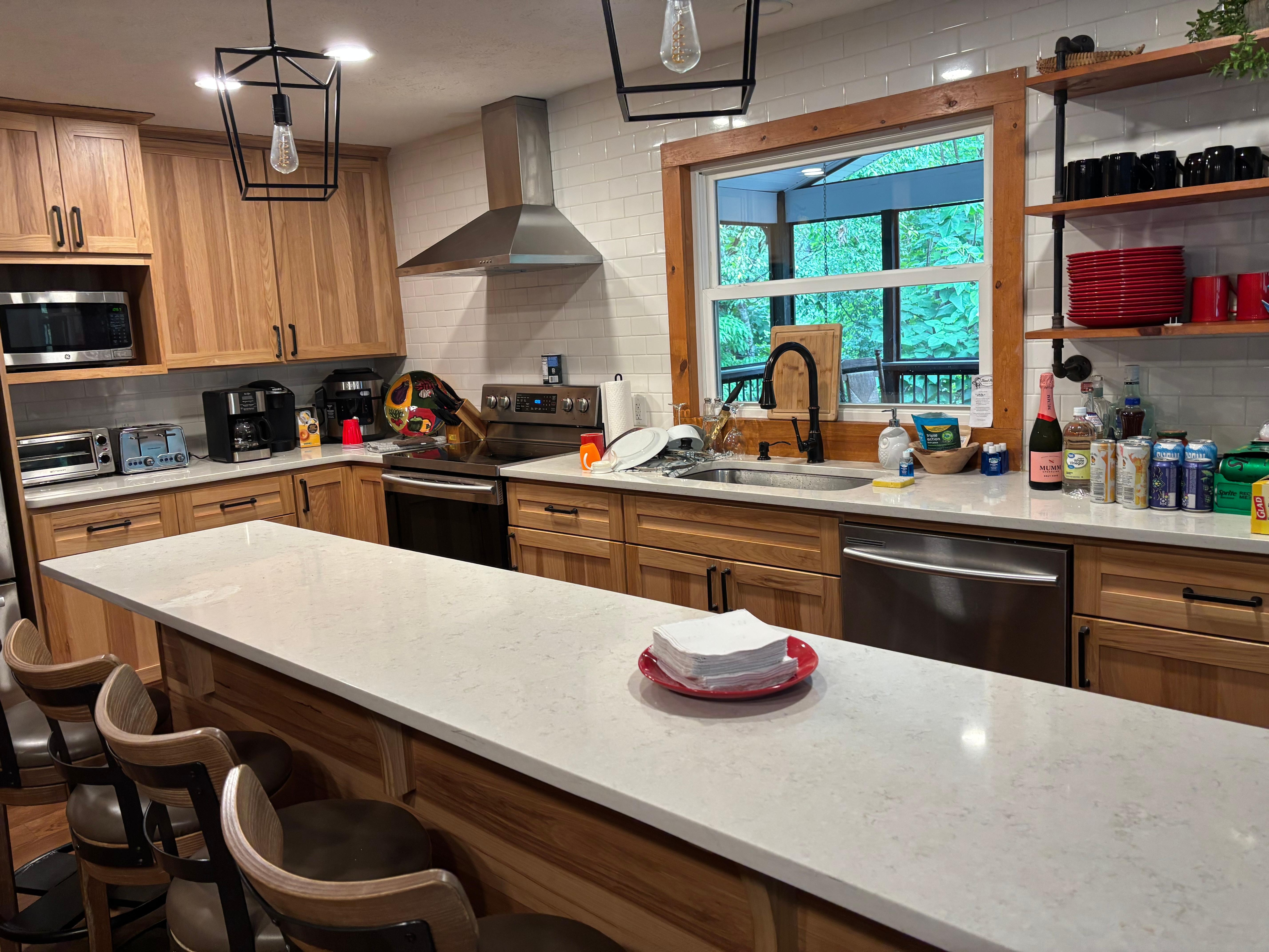 Bottom line is that the Emory House was designed to provide you with all of the comforts and conveniences that you would want for your large group...a fully equipped and inviting kitchen (with a 2nd refrigerator down the hall), a total of 11 TV’s, (8 smart TV's and 3 with Rokus), good WiFi connectivity throughout the house, plenty of dining seating (a long dining table a round table and bar stool seating at the kitchen island), comfortable lounge seating with three couches in the family room, two screened porches, and 3 pack n' plays and 2 high chairs.