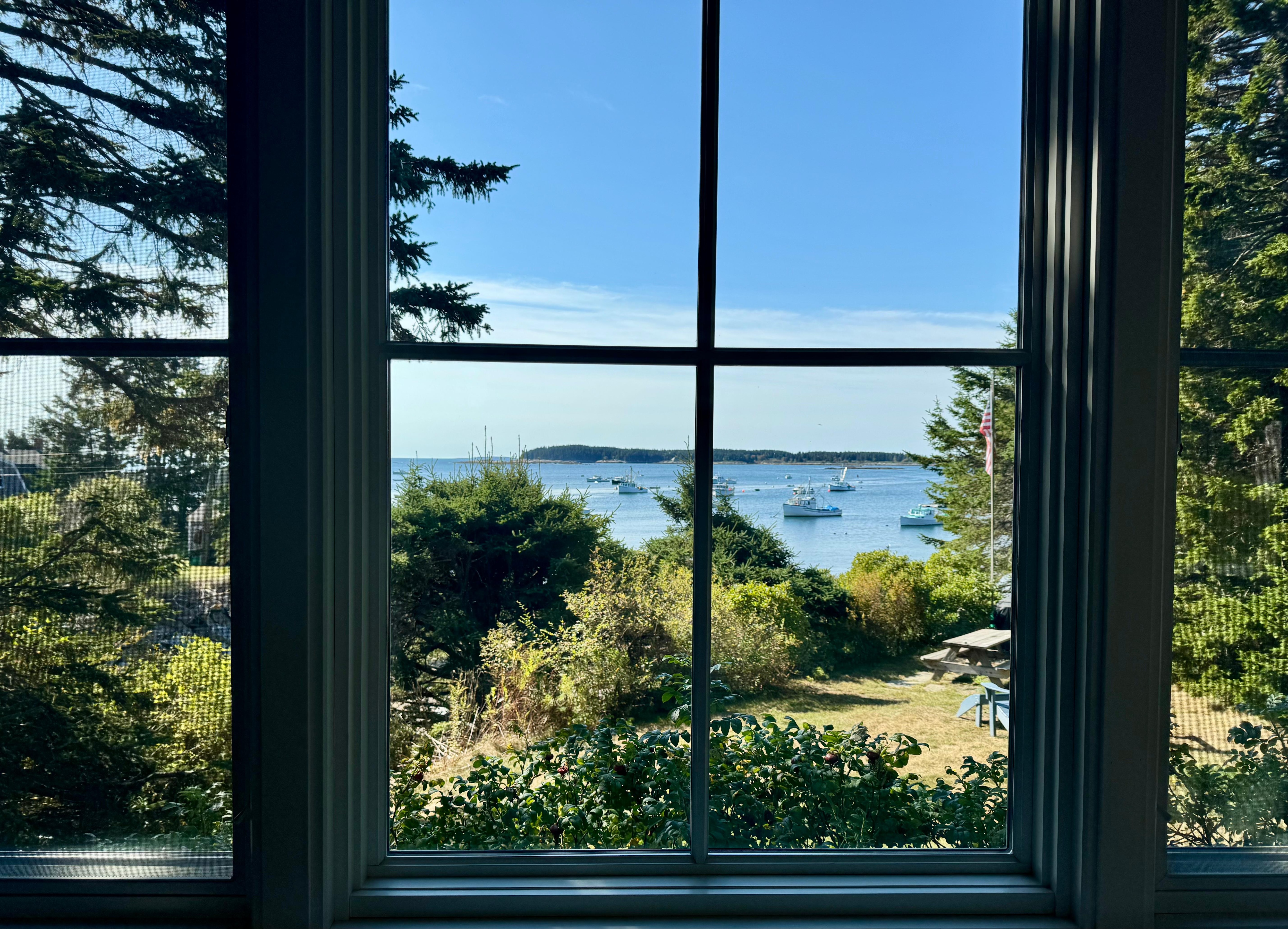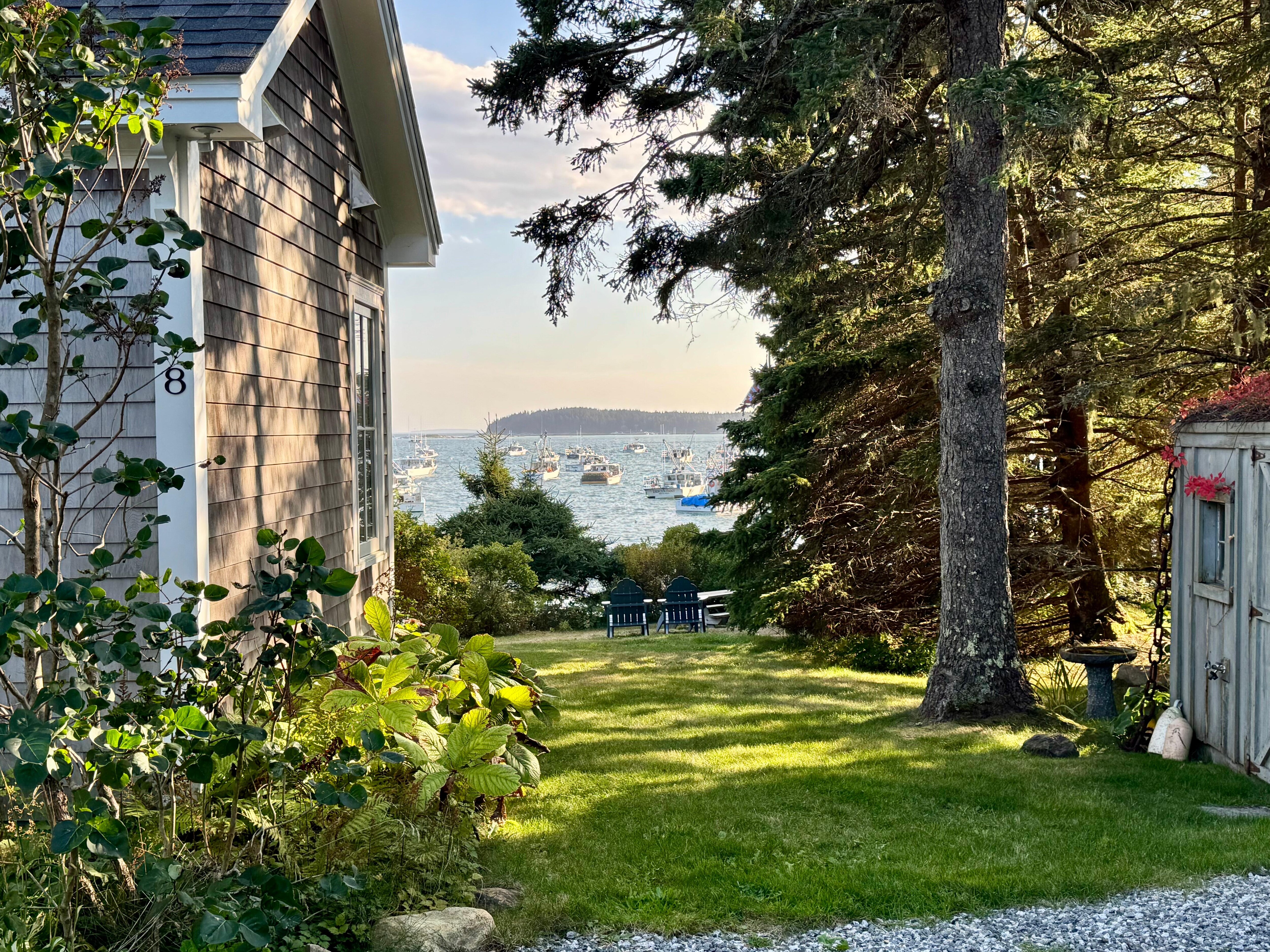 The cottage was designed to maximize surrounding views while embodying Maine coastal charm. Due to the cottage’s location, 50’ from the cove and framed by spruce trees, one feels perched above the water as though in a tree house. Seal Cottage is quiet and private, making it a lovely retreat for late spring, summer, or fall. Entering the great room, comprised of the kitchen and living room with a cast iron gas stove, you will find all the modern comforts needed for a cozy and relaxing vacation. The large windows in this room face due south, allowing you to catch the sunlight all day and beautiful moonlit skies reflecting on the ocean and harbor in the evening. Beyond the great room lies two bedrooms with ocean views, one with a queen size bed and one with two twin beds. The cottage's bathroom (the only room without an ocean view) has a walk-in shower with pebble tiled floor. We limit guests to 4 people and do not allow pets. Should you require additional space our neighboring cottage, Spruce Spray sleeps 6. (VRBO# 913026)
