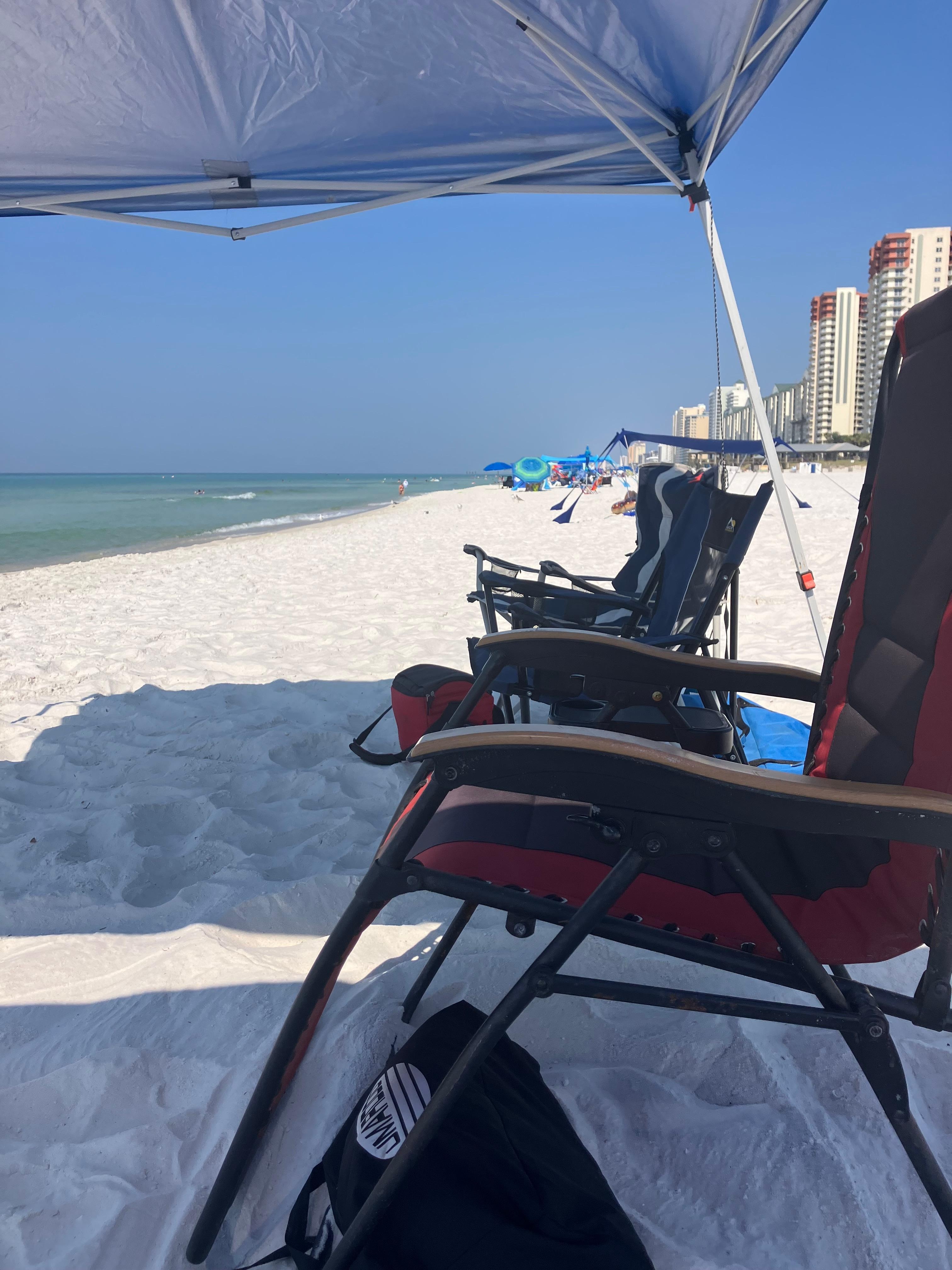 Beach chairs for 4 adults and 2 children, small beach umbrella,