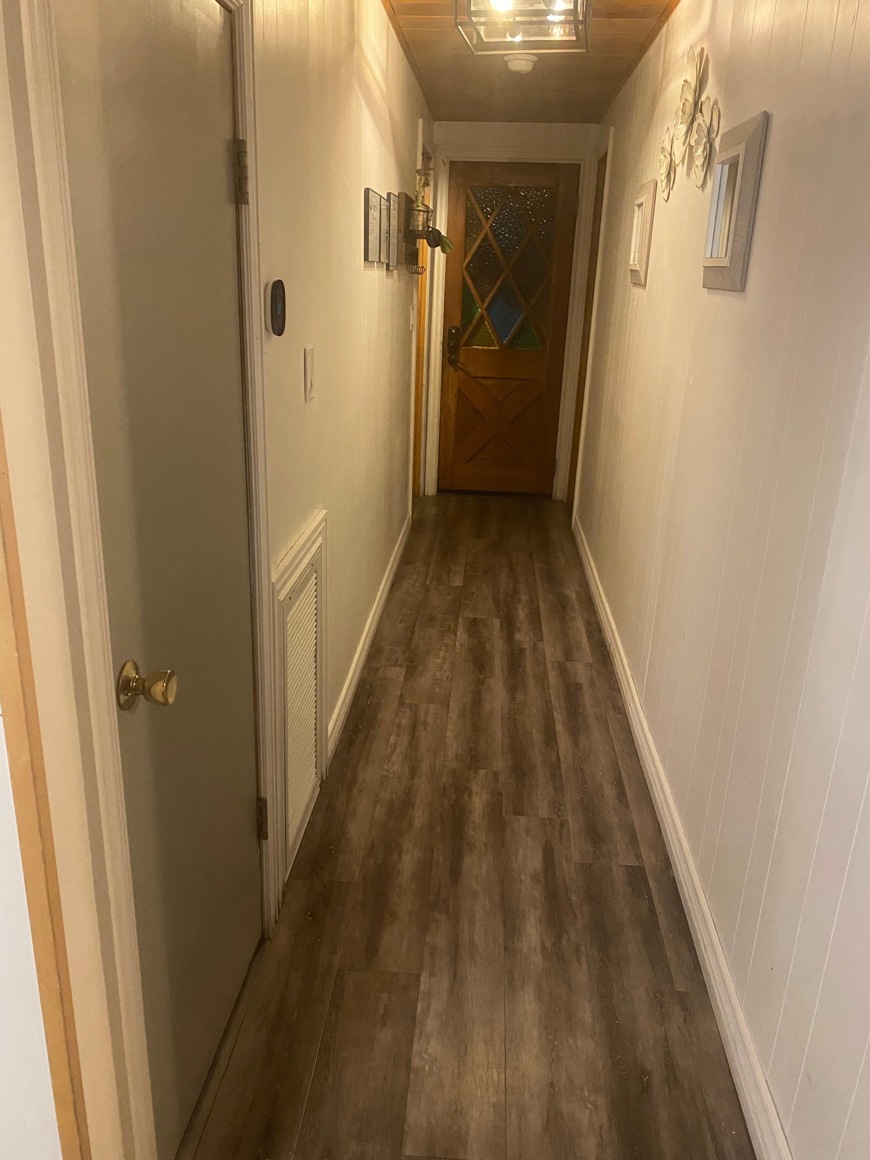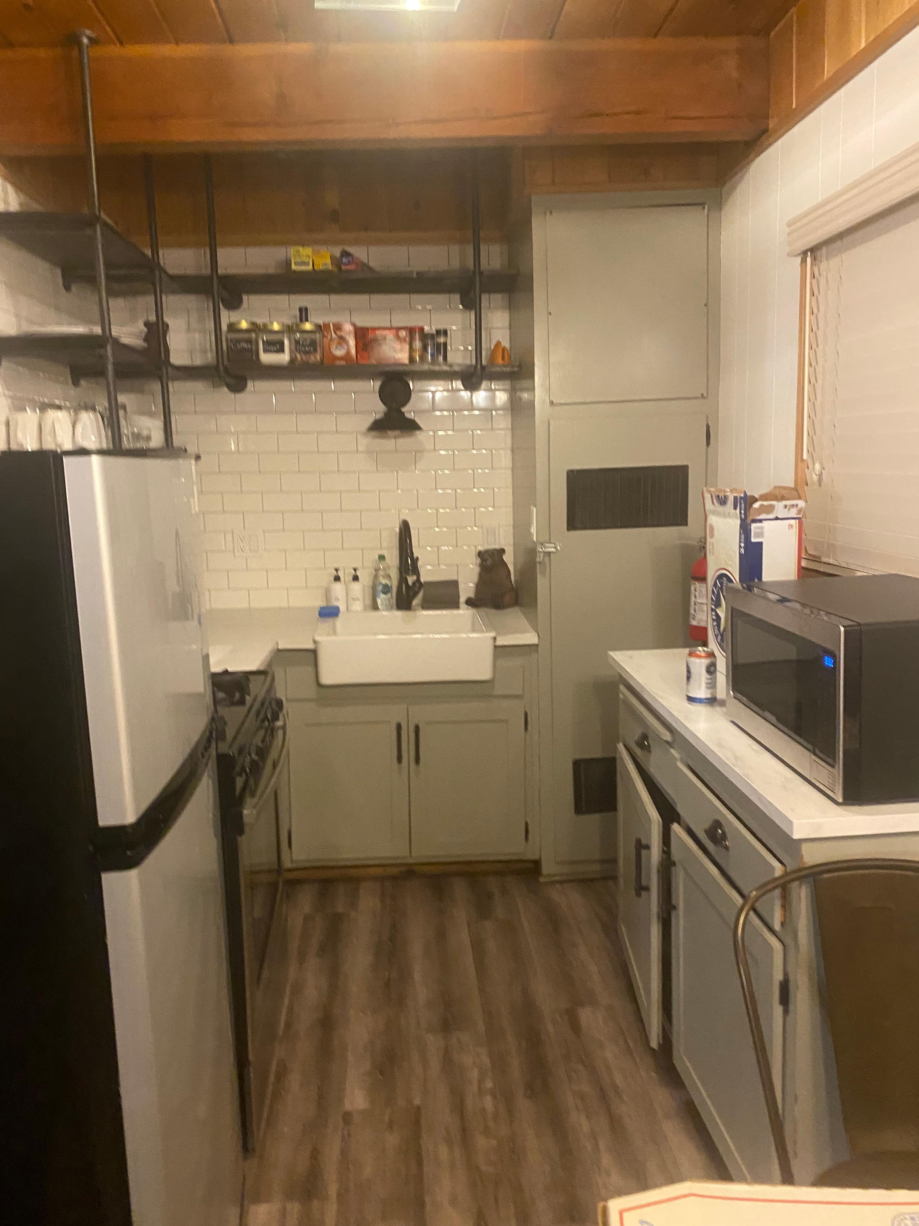 We love the rustic industrial touches with a splash of country chic. All the flooring throughout the home is waterproof. 650 sq foot home.