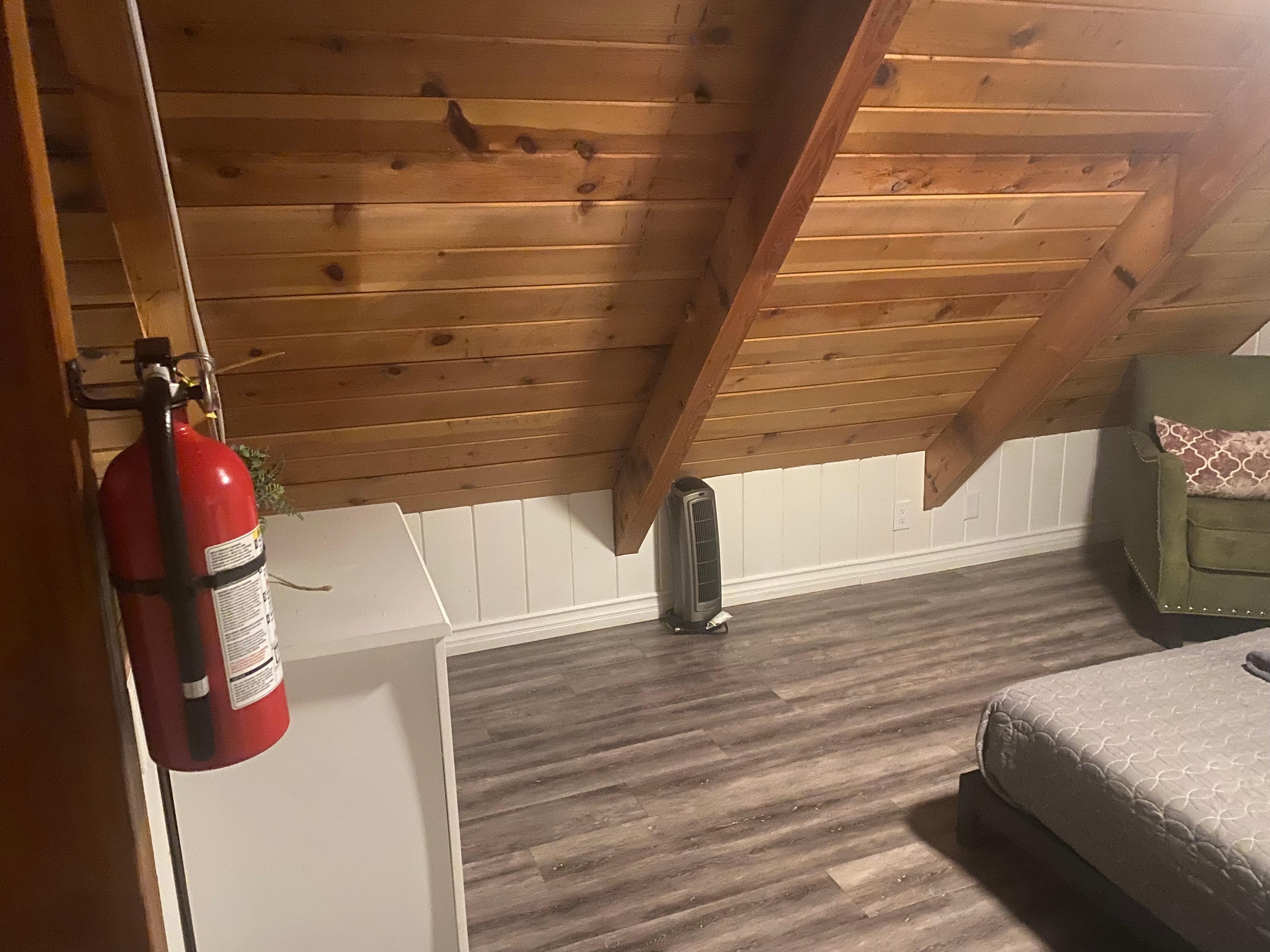 Loft- Queen sized bed, sitting chair, and dresser. note-photos show an additional twin. This has been removed.