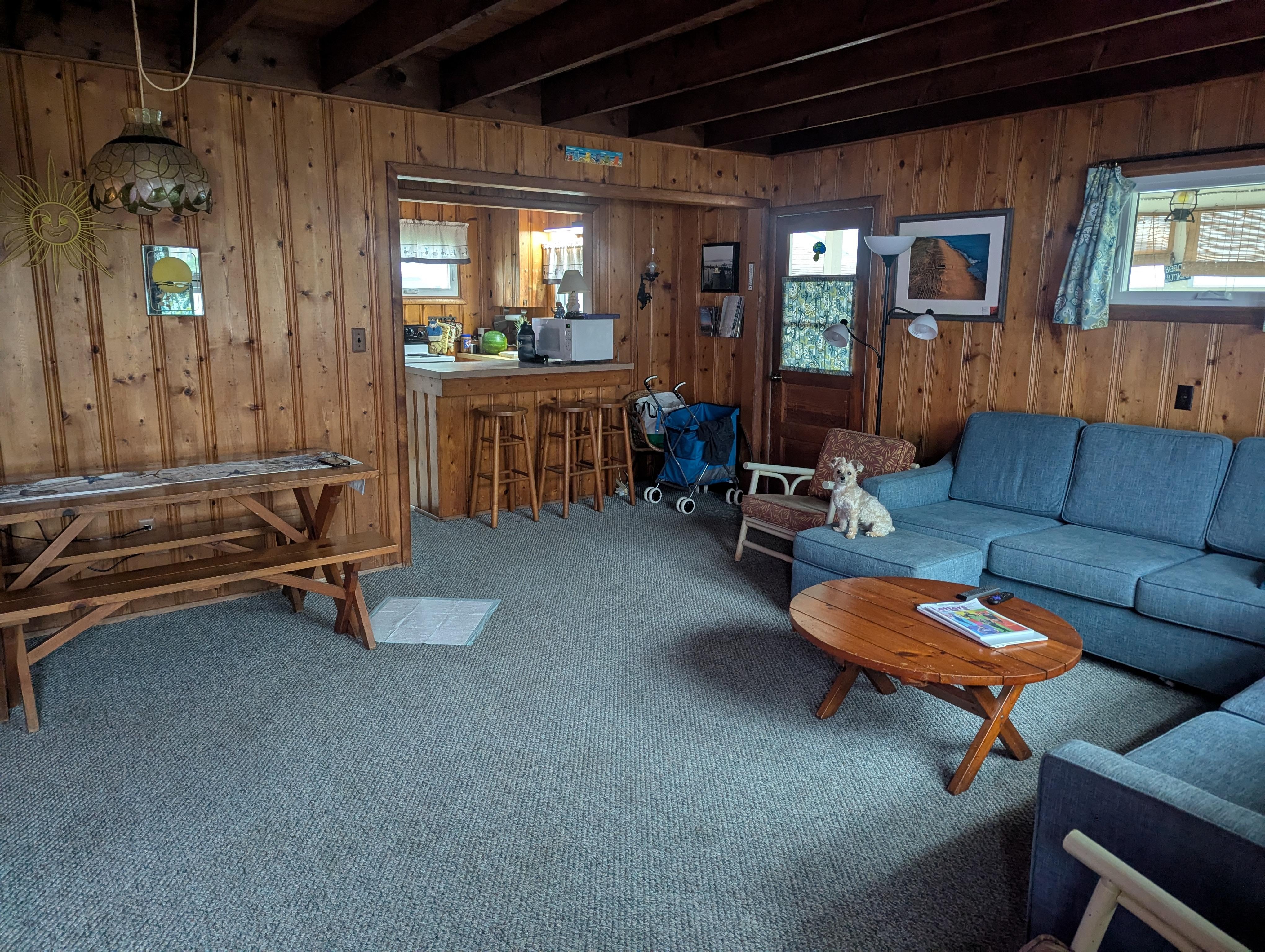 The cottage is the west side of a duplex and features classic notty pine throughout, a signature look of the early Dewey Beach homes. There are 2 bedrooms and 1 bath. In the large living room are 2 day beds for sleeping extra guest. A large screened in porch with large ceiling fan is the perfect setting for morning coffee or just chilling after a day at the beach. If you want to head into Rehoboth for an evening the Jolly Trolly stop is at the end of the street in front of Grotto Pizza. However, the best way to see what Dewey has to offer is by foot. Everything is a short walk away.