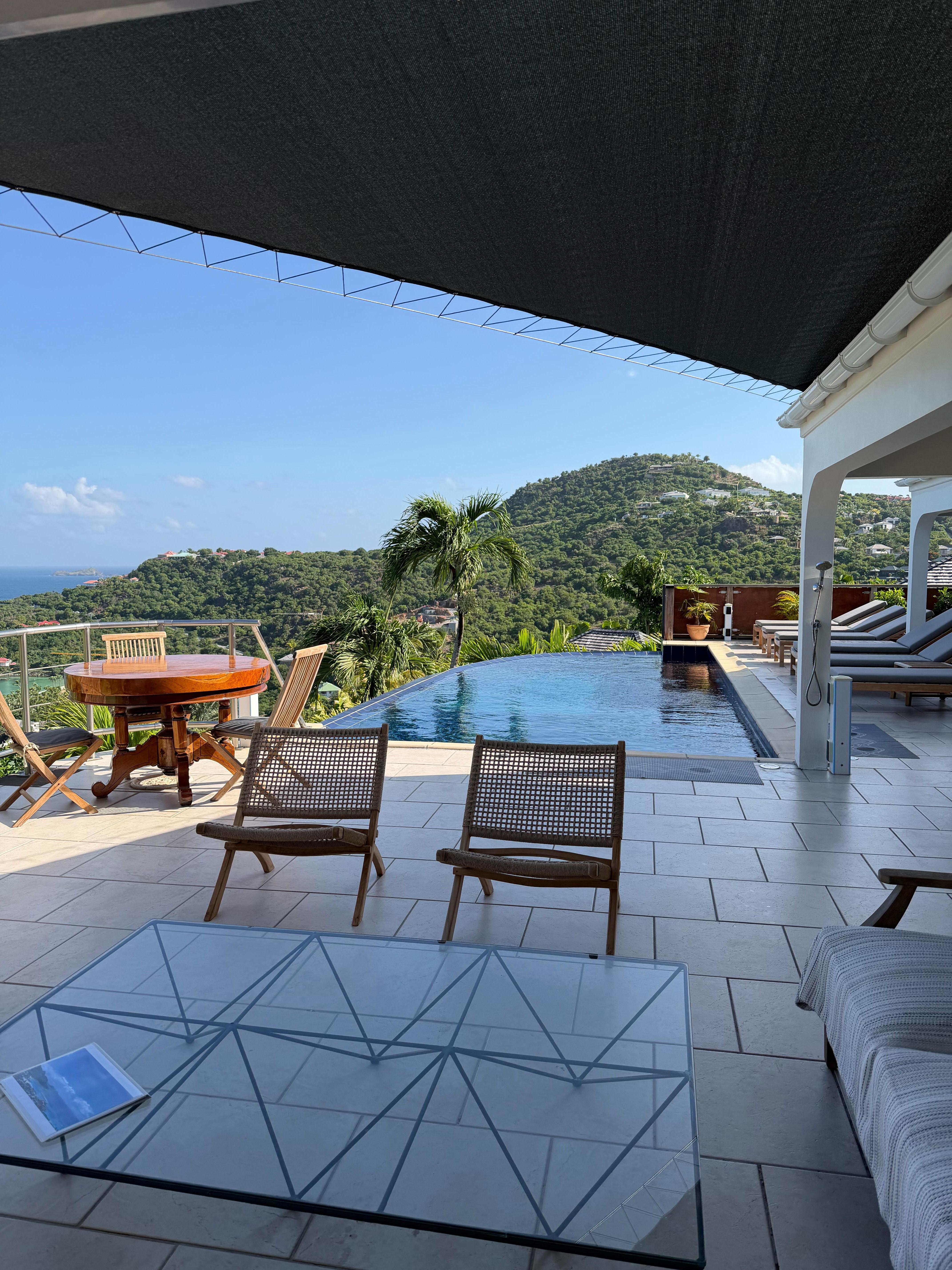 My stay at Villa Mystique was Magical from start to finish. Besides myself, 4 additional family members came to celebrate my 50th Birthday. Peggy is a Gem. She arranged for every moment to transpire seamlessly. She arranged a wonderful pickup from the SXM airport and transport to the ferry dock and met us at the St Barts Dock herself. We arrived at the Villa to a wonderful Champagne toast and every moment after I couldn't stop singing "I'm so Happy." The Villa is beautifully appointed, every room offering a different flavor. I occupied the master and awakened every day to the most fabulous view of Eden Rock and St. Jean Beach, blue skies, blue ocean, complete with rainbows from the sporadic rainfalls over the sea. My son loved cooking in the open air kitchen while we all danced around to the wonderful sounds coming from the fabulous stereo system. The location overlooking St Jean was perfect with easy access to all parts of the island. Our group enjoyed fireworks at the Eden Roc that were for someones huge wedding celebration, and it felt like they were for me as we watched from our poolside seats.