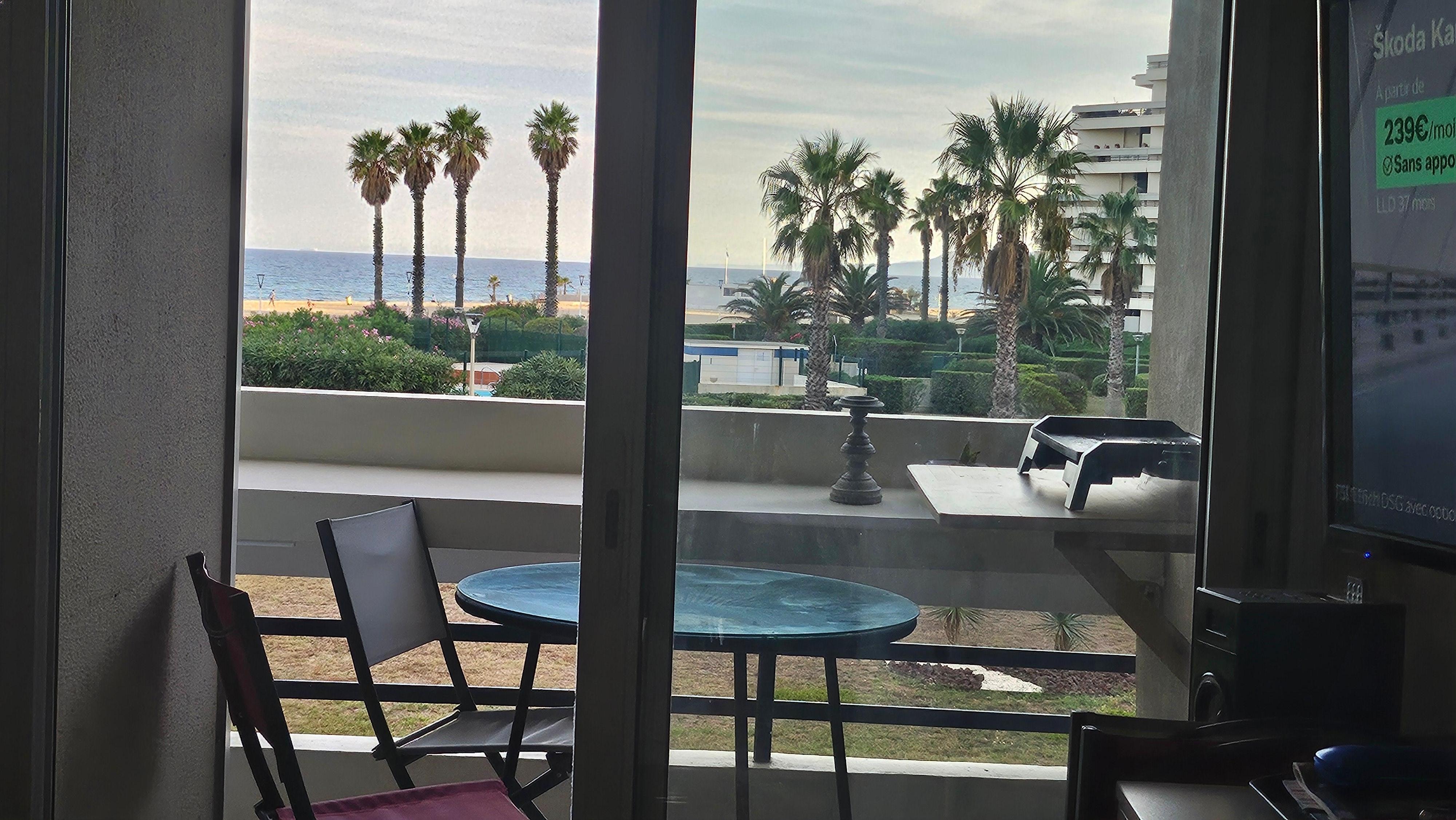 In a residential, quiet and pedestrian area, 32m2 T2 apartment in Canet Sud at the bottom of the sea with direct access to the sea with no road to cross.