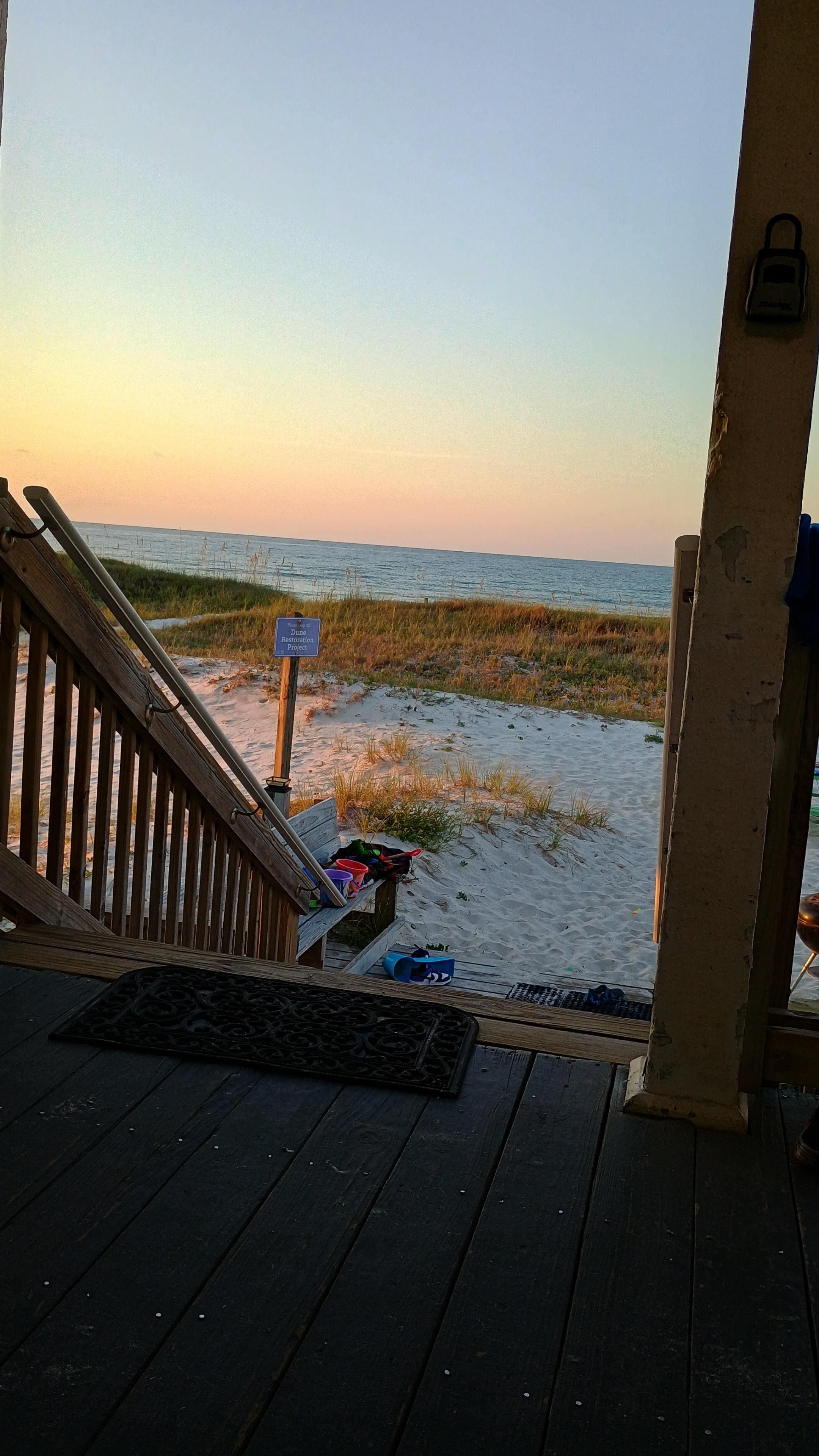 The Beach House - the name says it all! Set right on the beach in Gulf Shores, this bright, sunny, Gulf-front vacation home has a covered deck with a porch swing and stairs leading straight out to the sand. When you're not playing on the beach, bust out a board game on the picnic table on the deck, or head inside to stream Netflix on one of the HDTVs. This home also features a well-equipped kitchen with a breakfast bar.