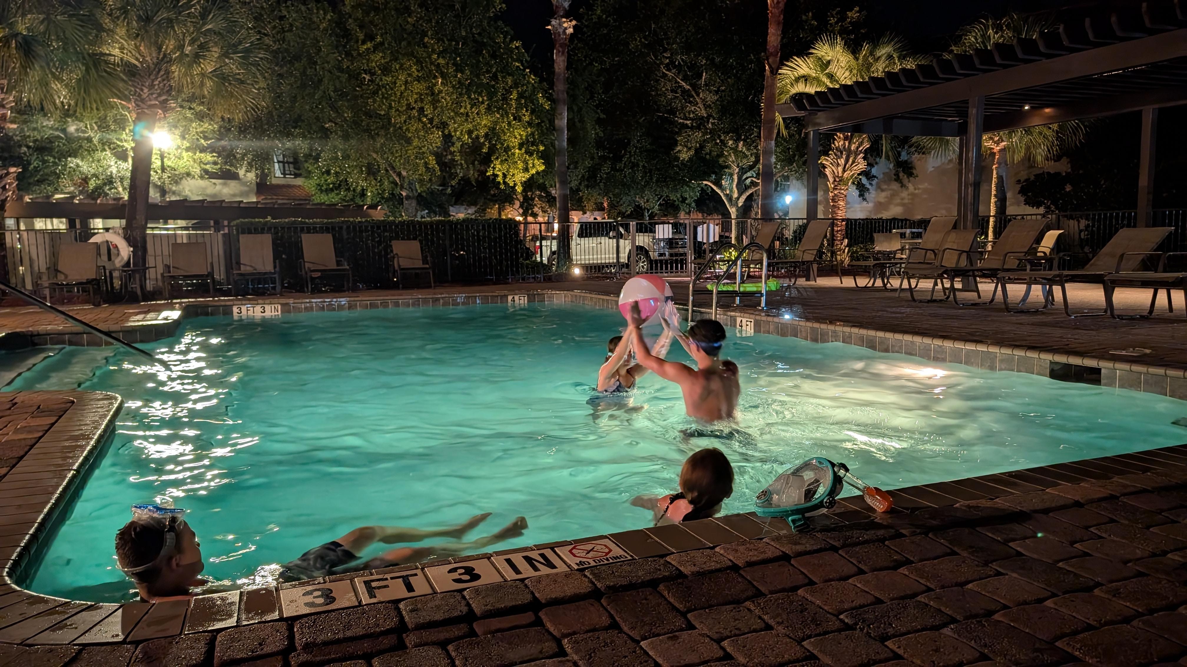 Our house is two doors from the community pool in Villa Lago and is an easy short walk to the Baytowne Wharf (<.5mile), with family fun, shopping and dining, but go ahead and drive one of the two golf carts instead. The home has 2 golf carts, one 6 passenger cart and one 4 passenger cart. This home has 4 spacious comfortable bedrooms. Each bedroom has its own full bath. Our home sleeps 10 comfortably, all in their own beds. The house has 4 outdoor patios, several with seating. The main patio (back of house) off the kitchen is perfect for morning coffee or afternoon wine - down as the sun sets on the other opposite of the house. Our home is one of the largest four bedrooms in the neighborhood, and the extra space, in the bathrooms, bedrooms and living area, will immediately make you more comfortable.