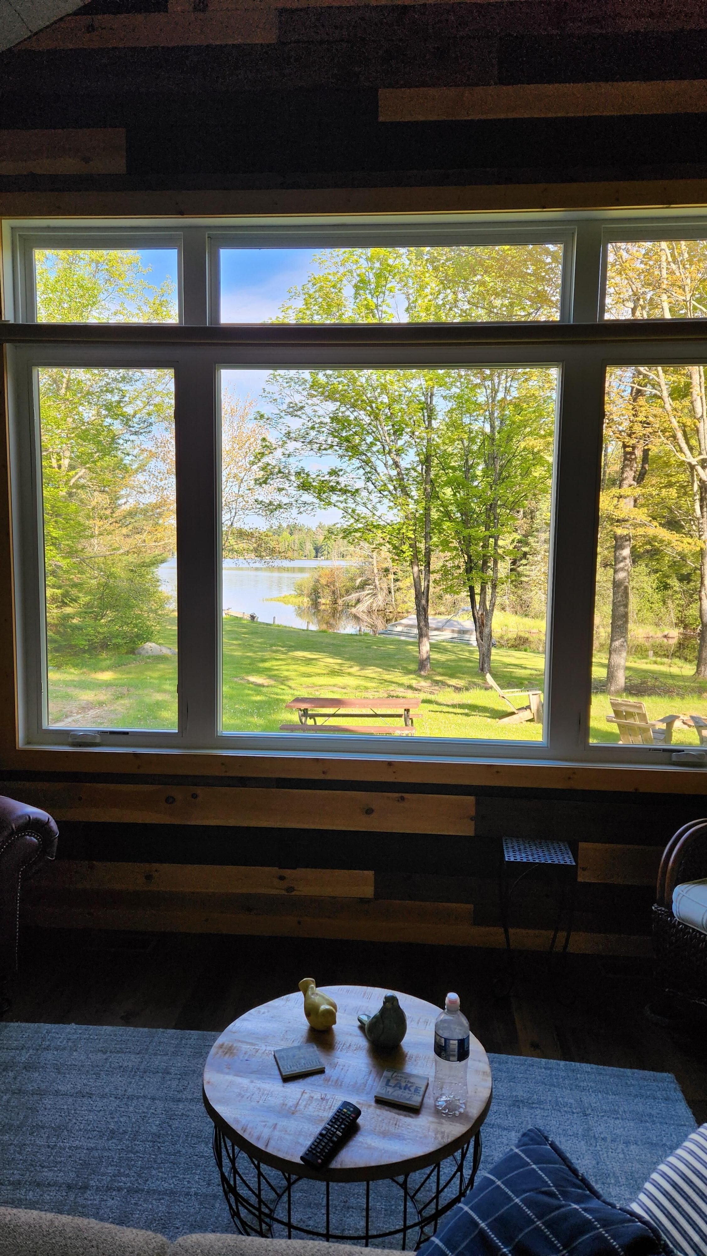 You get expansive views of the lake from the kitchen and living room. It was really nice in the fall because the leaves were falling with the lake in the background.