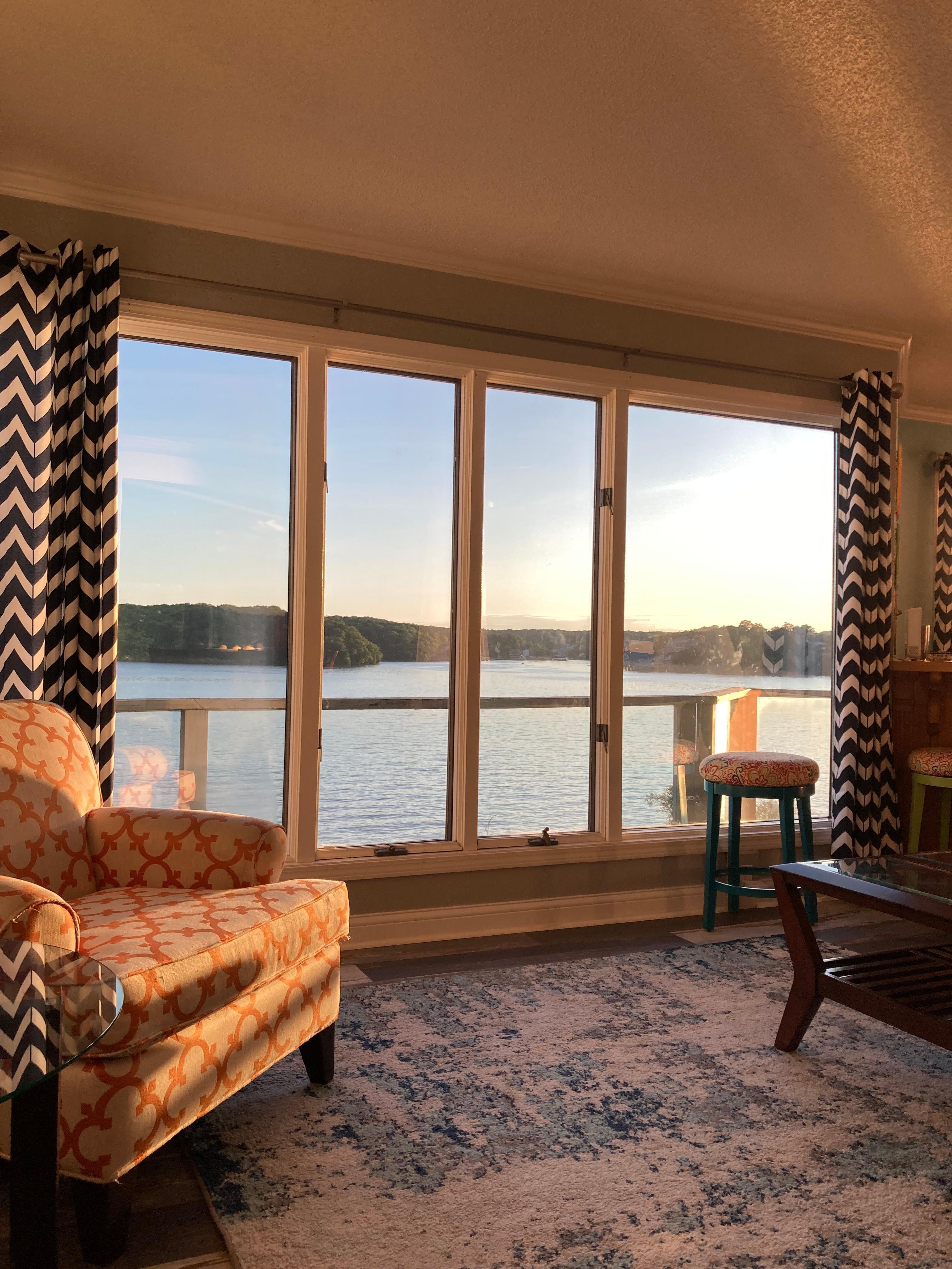 What is different about this vacation rental than the many others in Tan Tar A Estates? First of all, this Lake view is sure to be the most impressive Lake View you have/will see(n) at the Lake of the Ozarks. The rails are glass so that nothing blocks the breathtaking view, you will feel like the boats are driving under you as they pass by! The decks are safe and sealed off so kids and pets are perfectly safe. The view from inside the living room tops almost every other view in Tan Tar A, so you can sit in the air conditioning and enjoy the lake view. The upper-level sun deck has an 8-mile view, chaise lounges, and a protective metal railing all around.