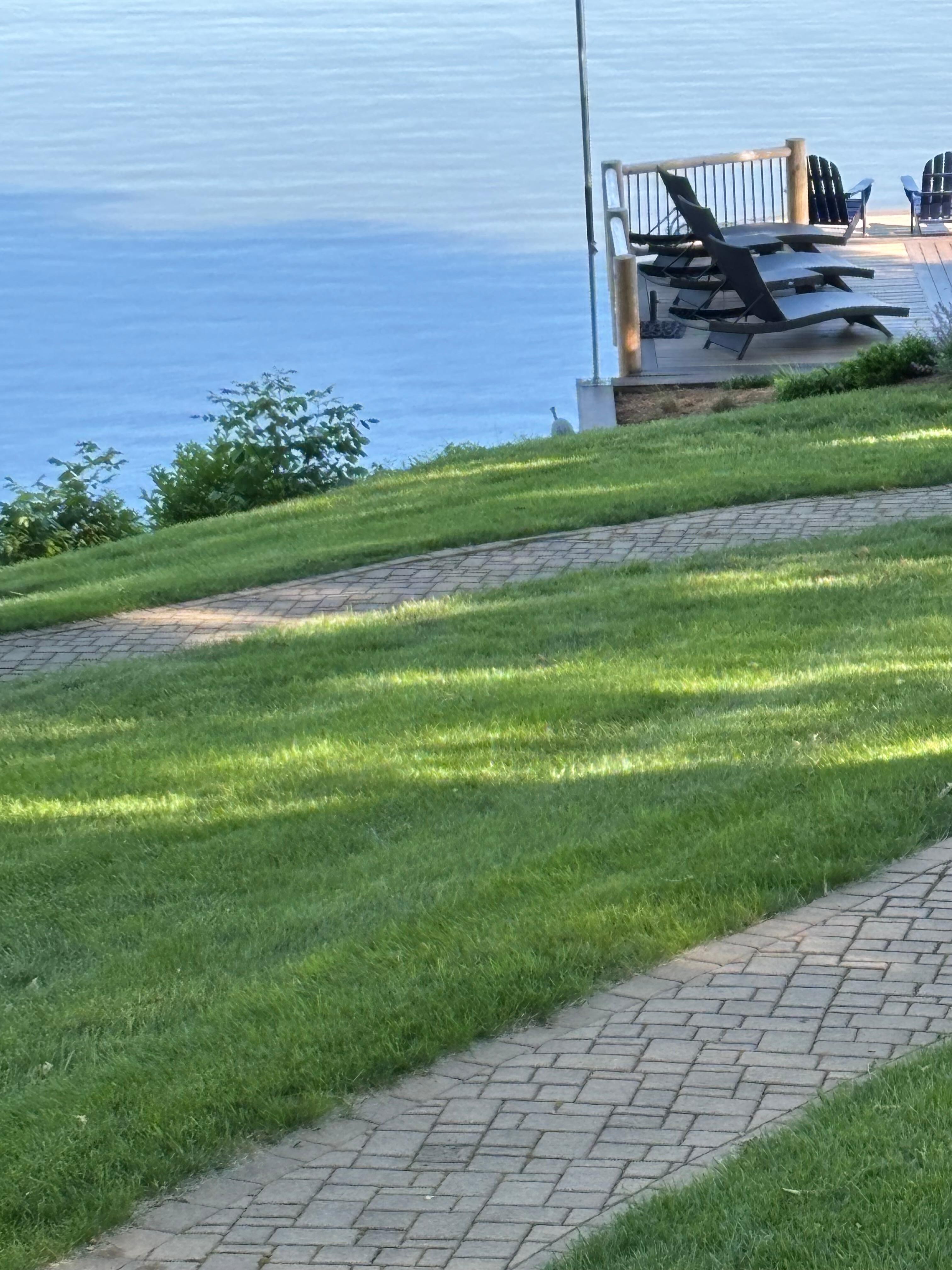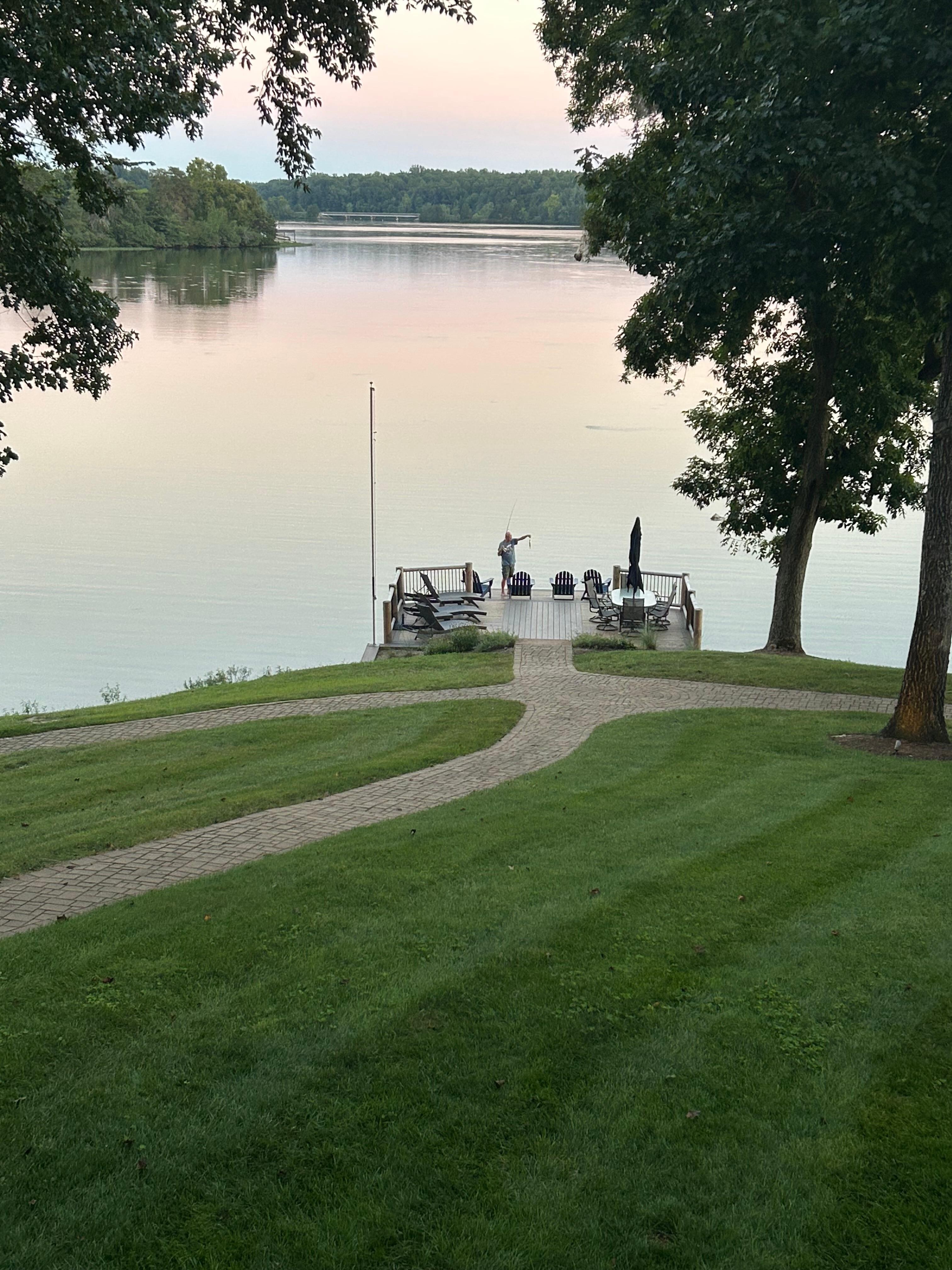 + Take a break on the waterside stone patio as you watch lake activities and wildlife pass by from your vantage point perched upon a small hill overlooking the lake.