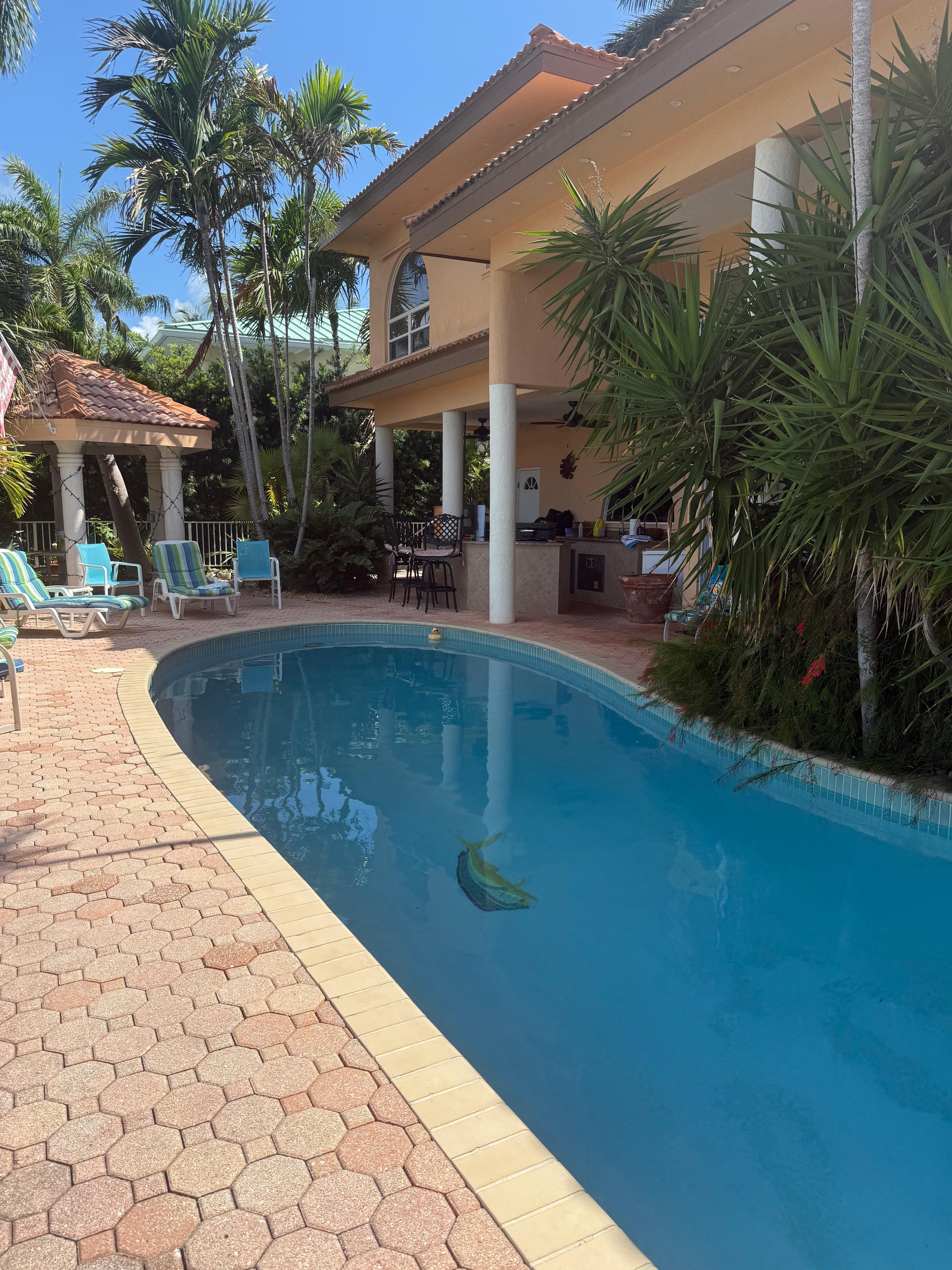 Pups are welcome if well behaved . There is a weekly pet fee as follows : one pup , $250 , two pups , $400, and three pups , $500. . Please see our other house in Marathon where we have over 200 five star reviews ! See VRBO # 335111 { Casa del Sol } The Casa Del Mare is a wonderful house built by D'asign Source --- considered the top builder \ designer in the Florida Keys . Situated on the ocean side of the island on a wide crystal clear canal only a few yards from the open ocean, the location could not be better. Our dock is approximately 100 yards from the open ocean and just across from the entryway to Vaca cut and accesses to the bay country. The dock is 30' long and can easily accommodate boats up to 38' . This is a real plus for the serious diver or fisherman.