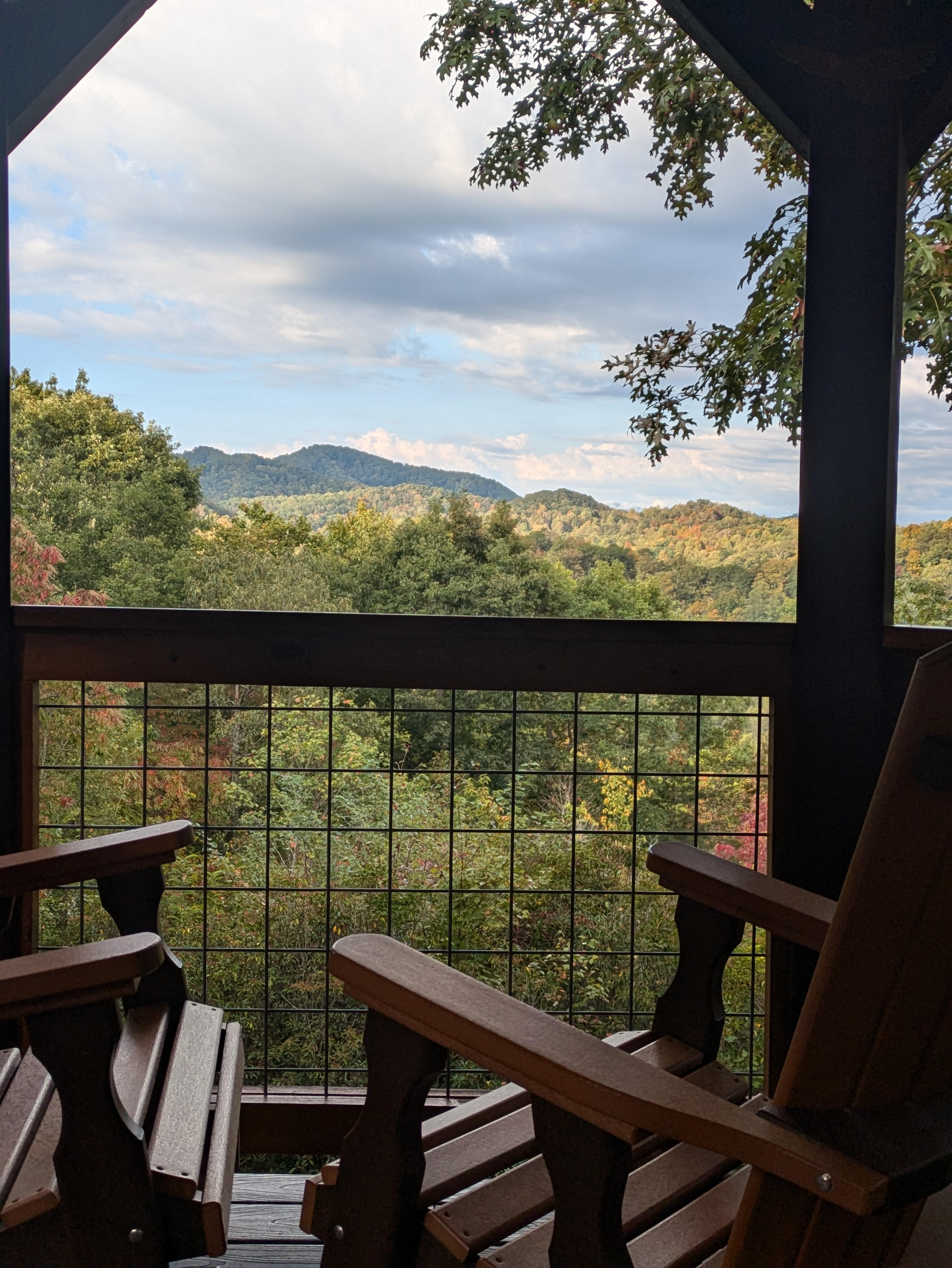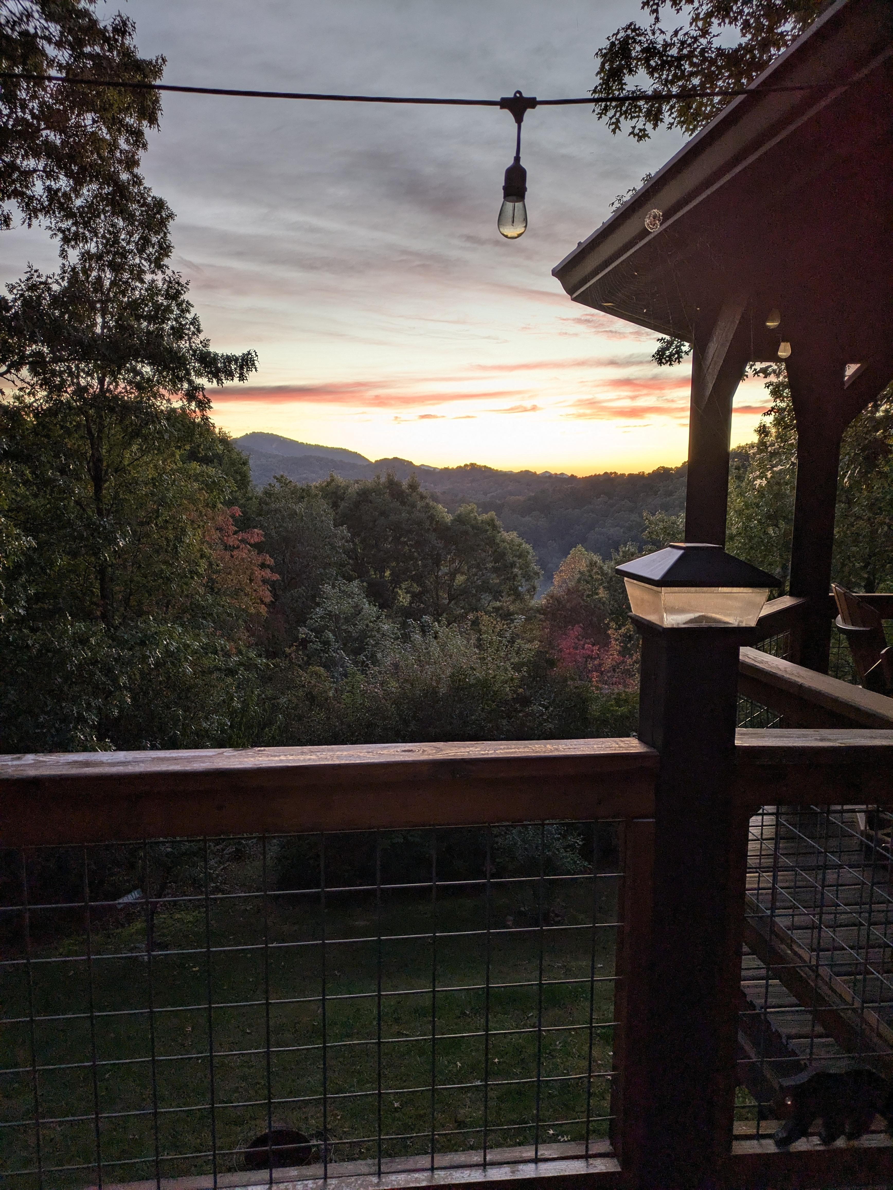 Sunset views of the Great Smoky Mountains National park from just about anywhere indoors or out await you at the Eagles Nest, a 4-bedroom, 2.5 bath cabin. Outdoors the spacious wrap around deck connects to a two-story gazebo. Relax at the outdoor fireplace on the main level, take a soak in the hot tub below, or relax in the Sauna. The Large great room, kitchen, dining and master bedroom open to decks with mountain views. Top Floor has a fully stocked kitchen, There are 2 king size beds 1 located in the master bedroom upstairs and the other downstairs in the second bedroom that has its own Quartz fireplace, the middle bedroom has 3 twin beds that can be positioned any way you desire, the fourth bedroom is also a home theater room with three Futons one Full and two twins, The Living room is equipped with a comfy couch that folds out into a Full-size bed, This cabin will sleep up to 12.