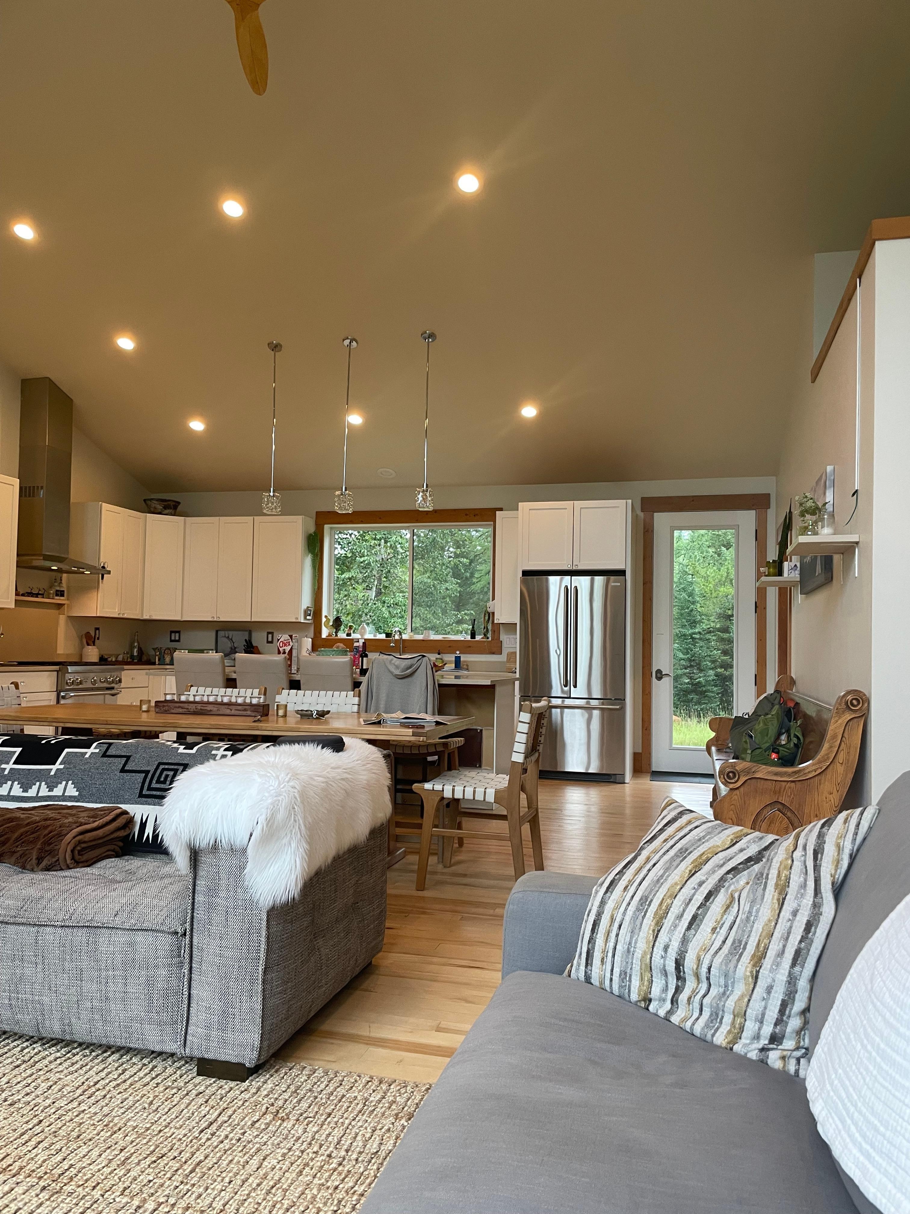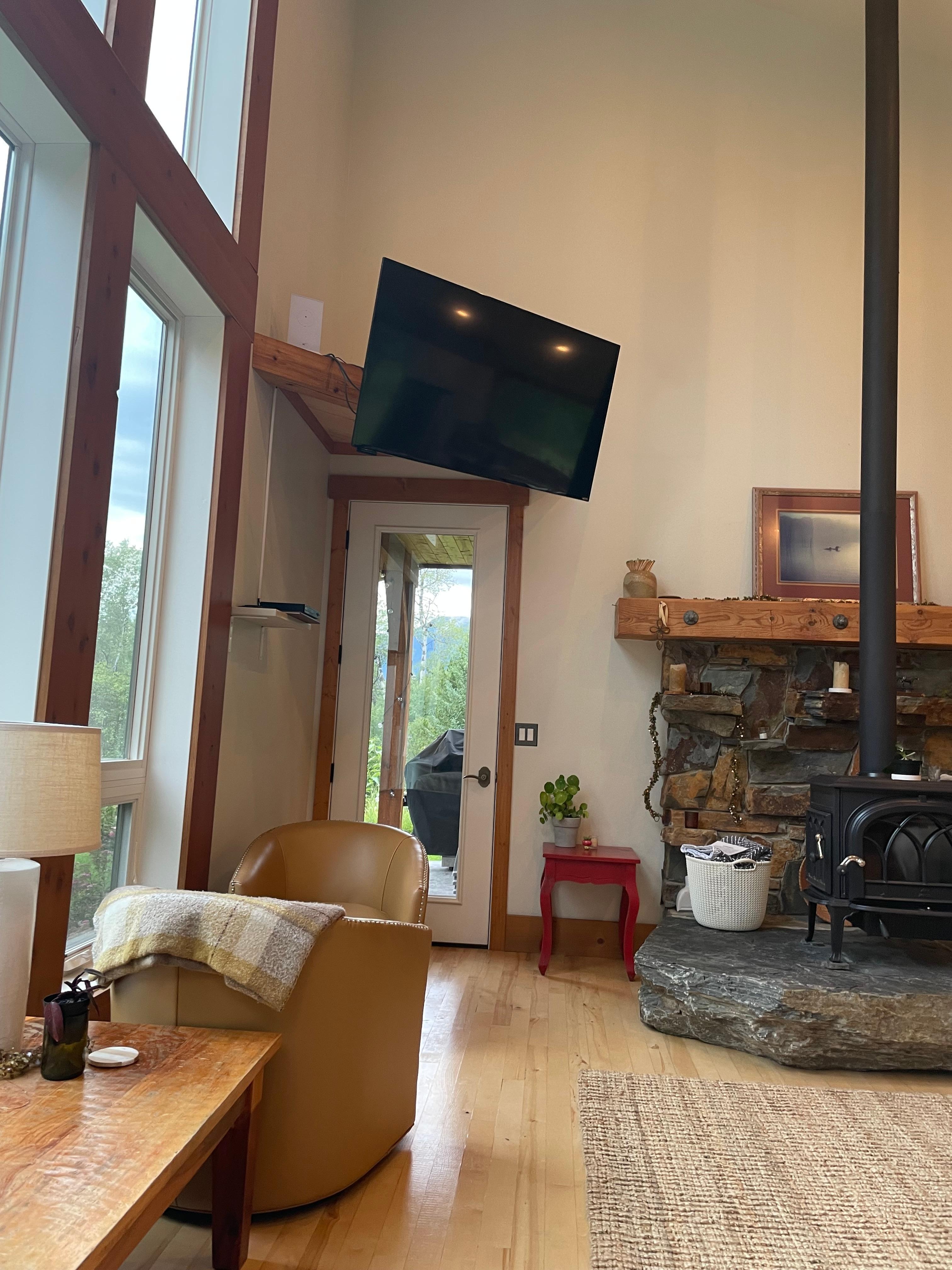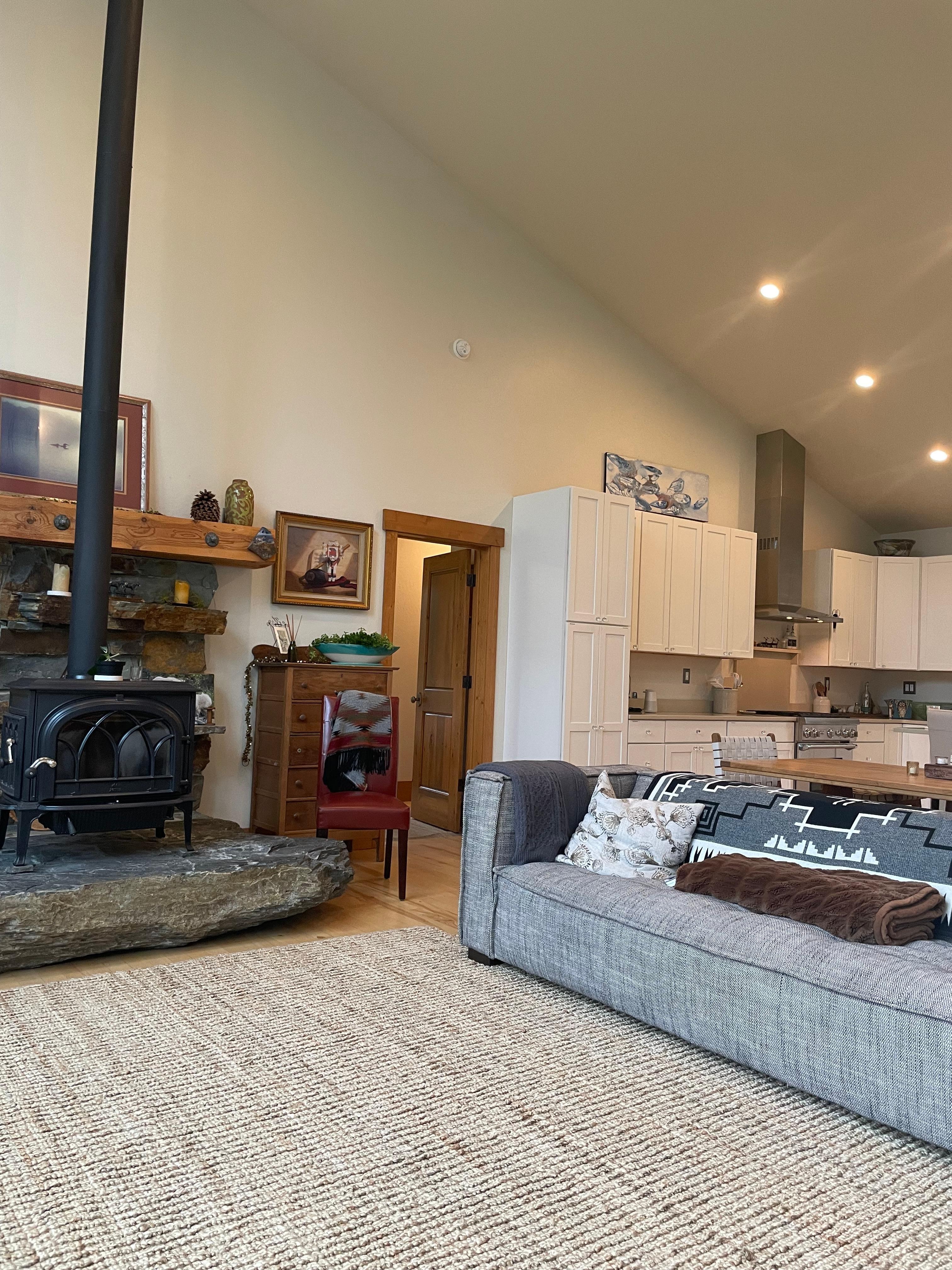 Our floor plan is open, with a spacious professional kitchen, and large, comfortable living room. Twenty three foot ceilings, and floor to ceiling windows, to bring the outdoors in.
