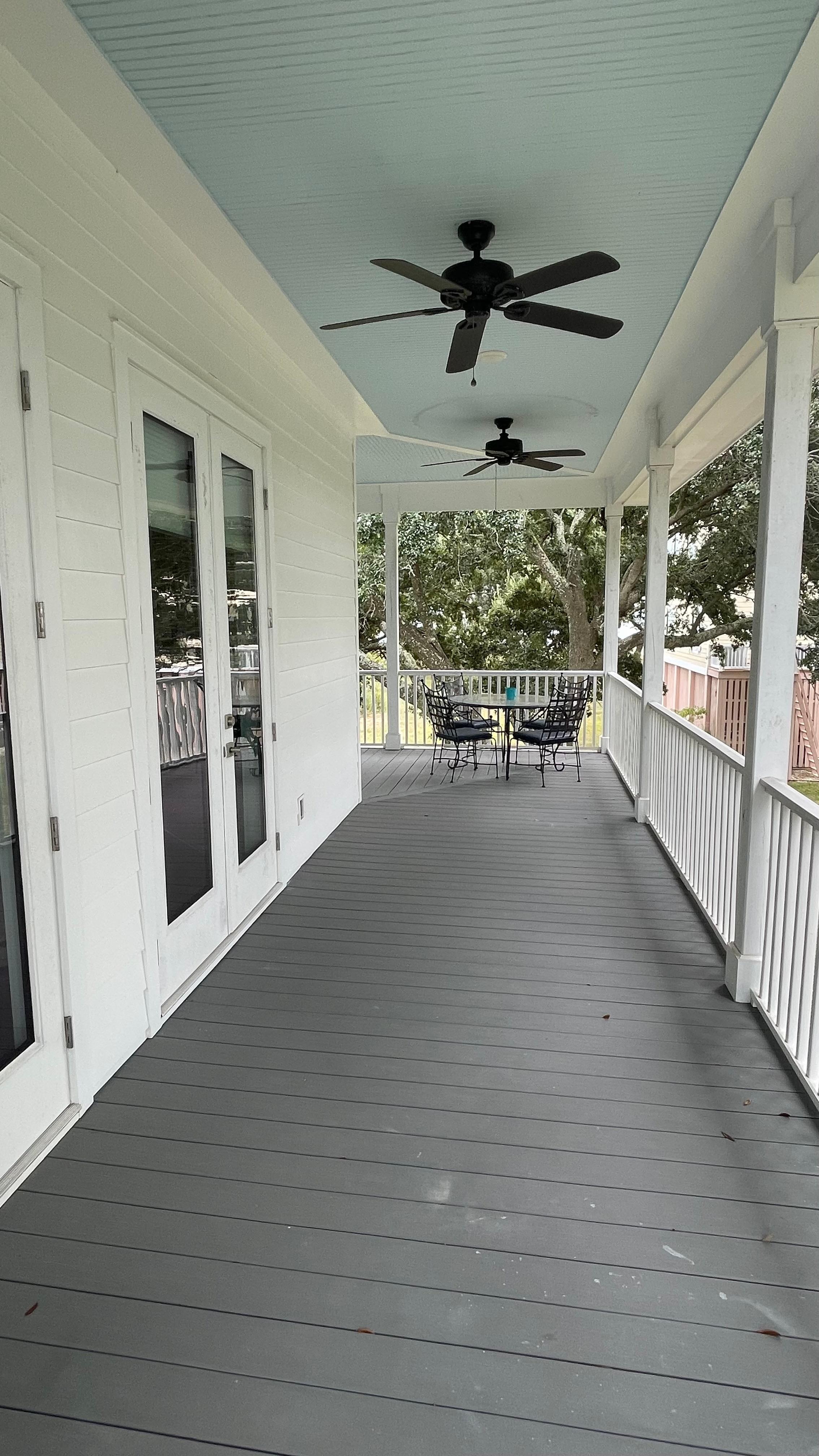 From your balcony, enjoy the beach views, birds singing and the gentle breezes from the Gulf of Mexico. The large porch offers plenty of room to entertain and dine. It's eqipped with a gate at the top of the stairs for child safety.
