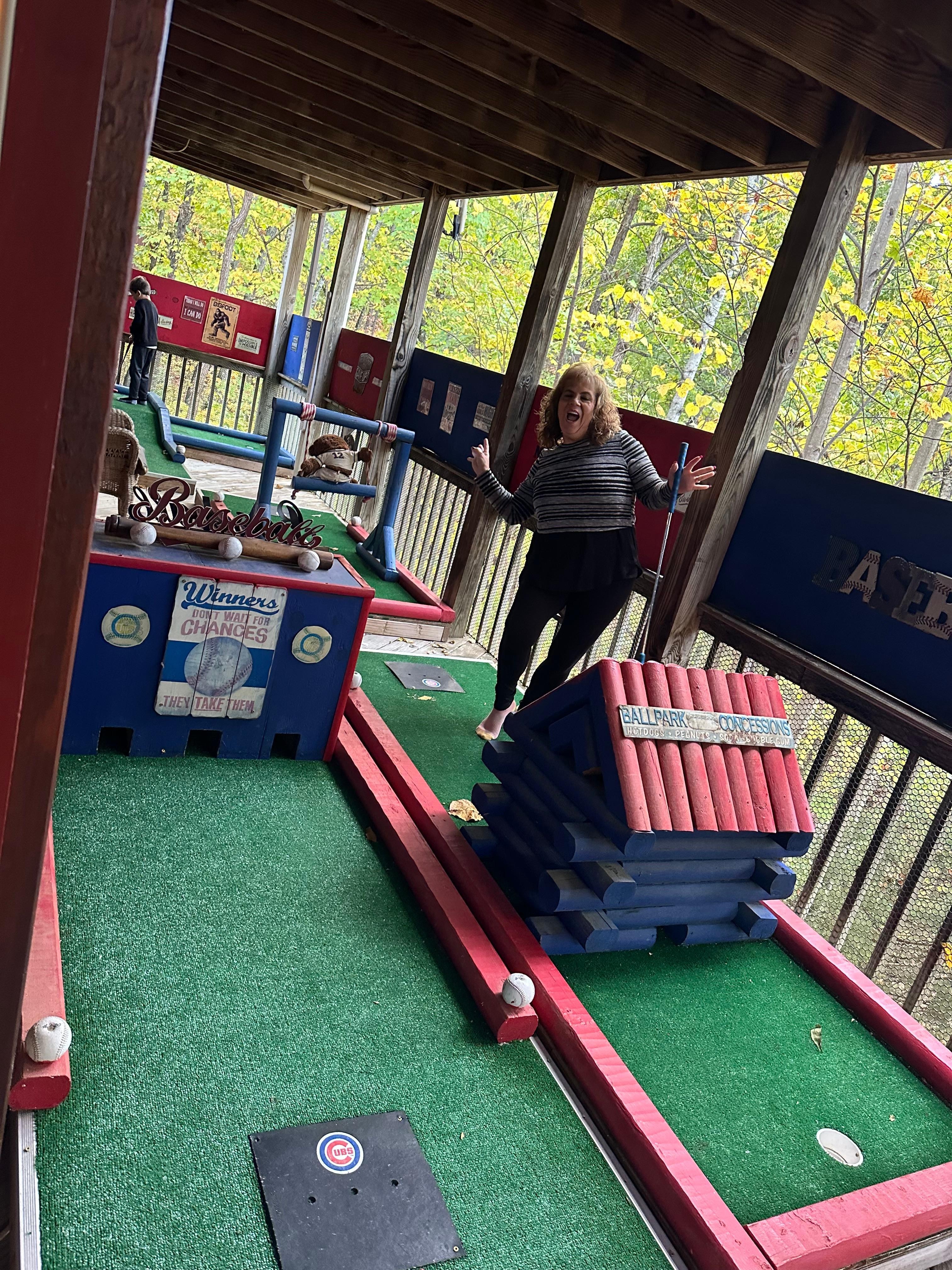 Chicago Cubs Mtn Retreat Cabin offers 3 bedrooms 3.5 bathrooms the main level offers a fully equipped kitchen (dishes, pots and pans, glasses, silverware, small appliances etc) , living room with large flat screen t.v. and duel gas fireplace. The master bedroom has a king bed, gas fireplace, large Jacuzzi tub and private bath with stand up shower. The 2nd master offers a king bed with a 50" smart tv (no satellite offered on this tv) with private bath tub/shower combo. On the back deck you will find a private hot tub with a t.v. and relaxing rocking chairs. Downstairs you will find a fun filled game room equipped with a pool table, fooseball table, 2 person sit down arcade with 12 games, sleeper sofa, refrigerator,microwave and a large flat screen t.v. to watch your favorite game. Just outside the game room on the deck is your very own private putt putt course to enjoy. Also located downstairs you will find the half-bath off the game room and the third bedroom with a queen bed, 50" smart tv (no satellite offered on this tv) and private bathroom with a walk in shower. You also have access to the indoor heated pool open year round.